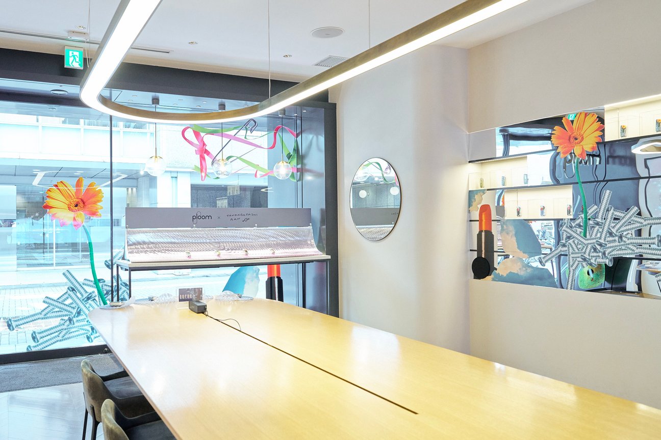 Ploom Shop 銀座店の店内。Ploom Shop名古屋店となんば店を加えた3店舗限定でとんだ林さんが手がけた特別なインスタレーションを展開。