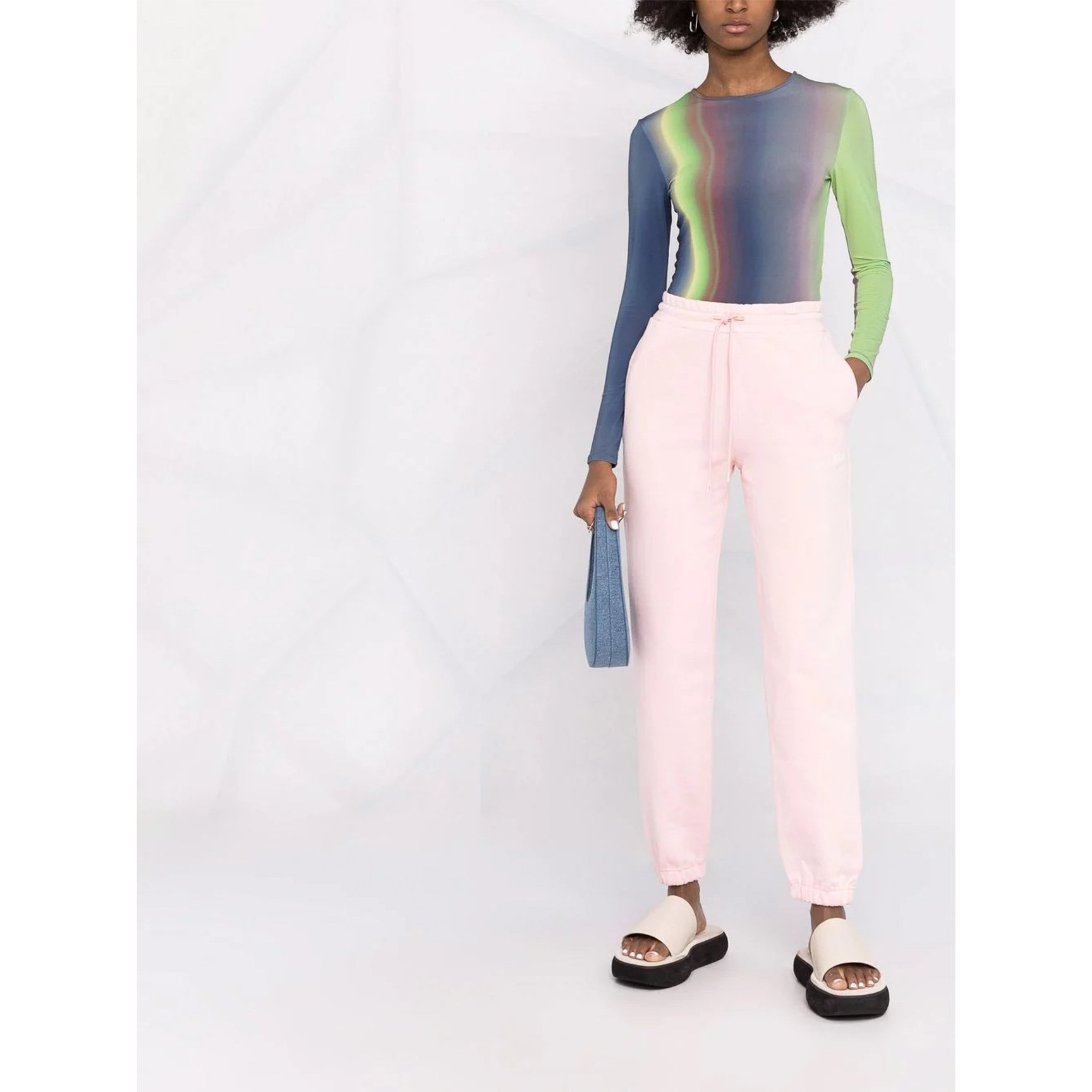 「エムエスジーエム(MSGM)」では、ほのかに華やぐピンクが女性らしいトラックパンツスタイルを叶えてくれます。引き締め役としてきちんと感のあるアイテムと合わせることがおすすめ。