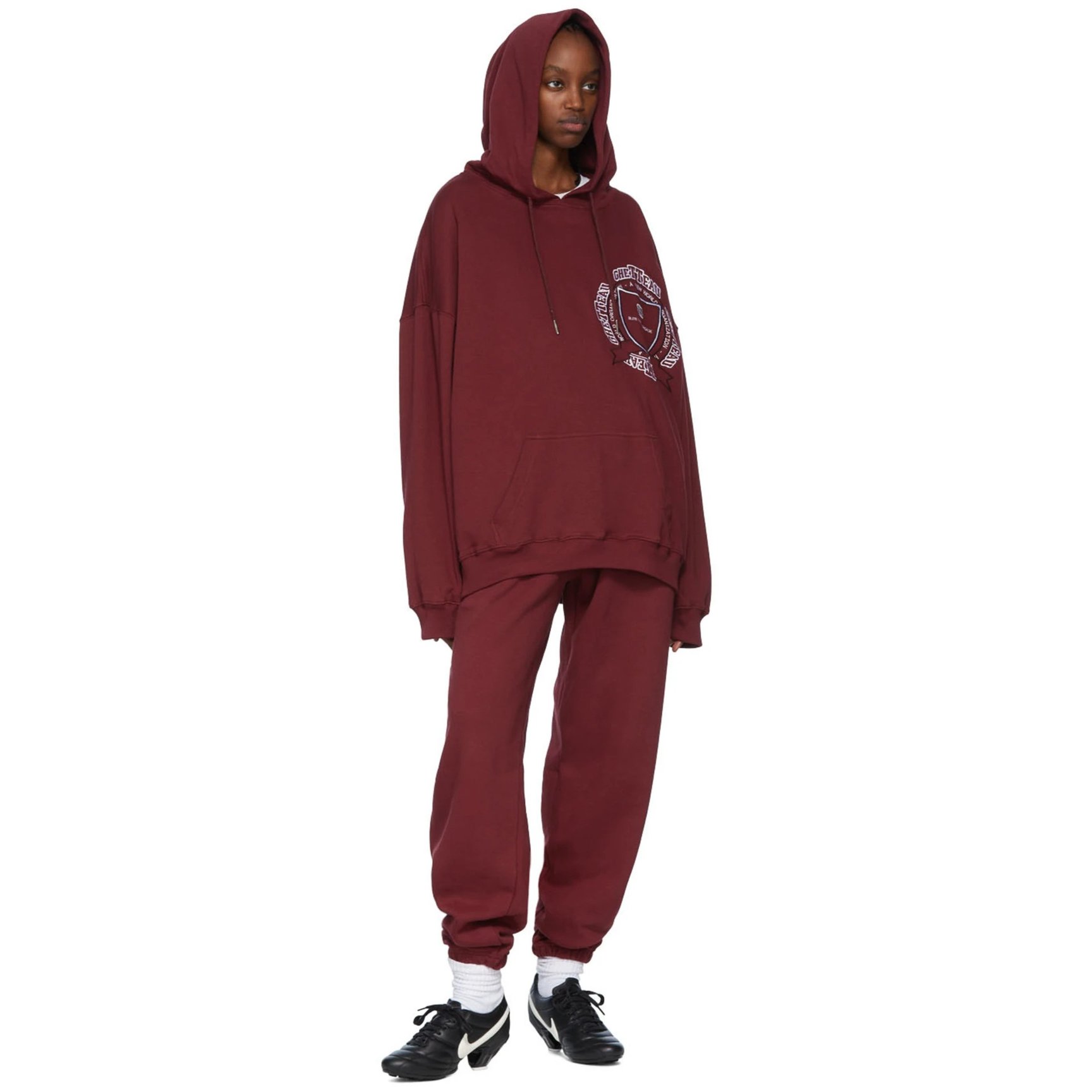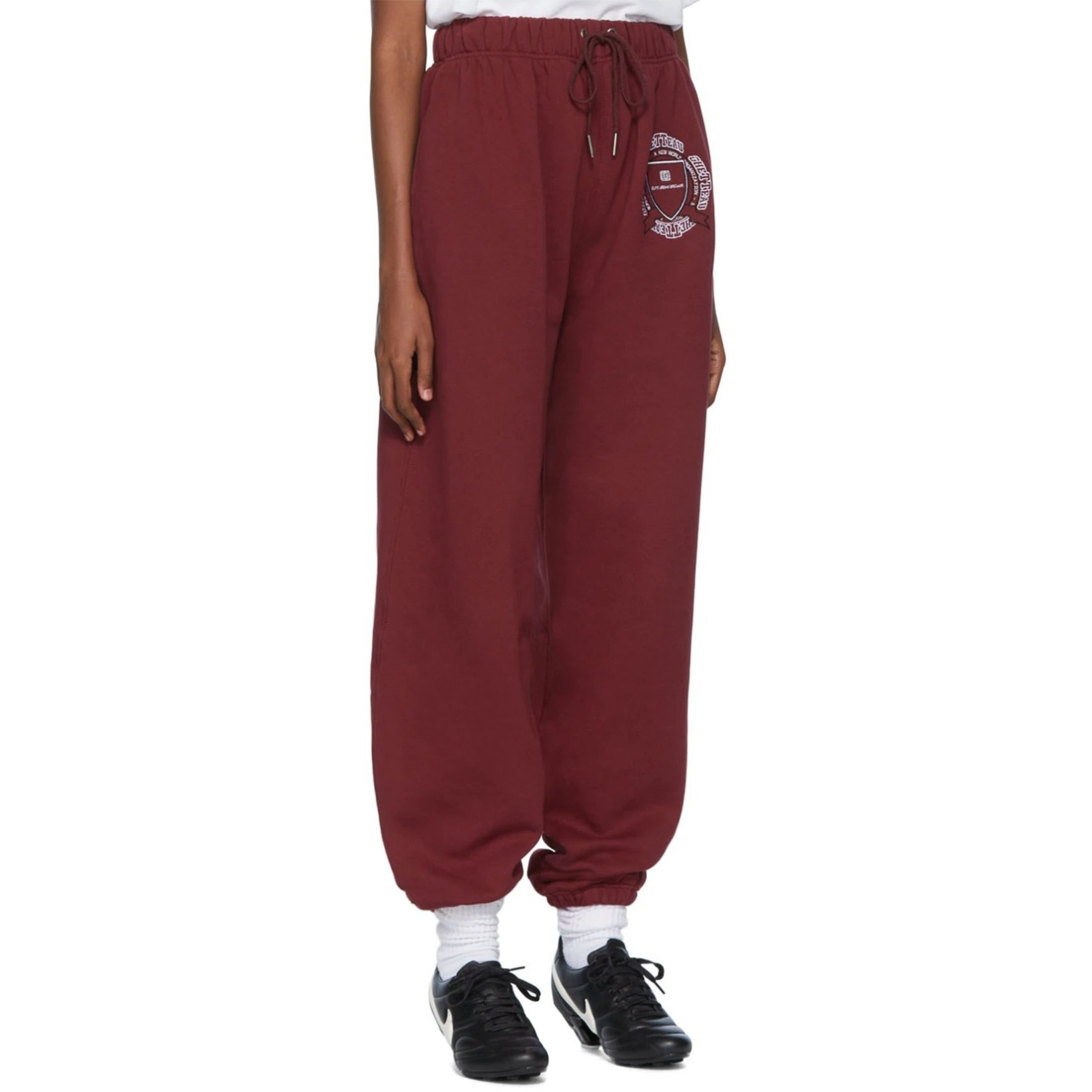 ニューヨーク発のブランド「フッド バイ エアー(HOOD BY AIR)」のトラックパンツは着心地柔らかなフリース素材。フロントのグラフィック刺繍やバーガンディのカラーリングは、どこかカレッジライクなムードのコーディネートが楽しめます。