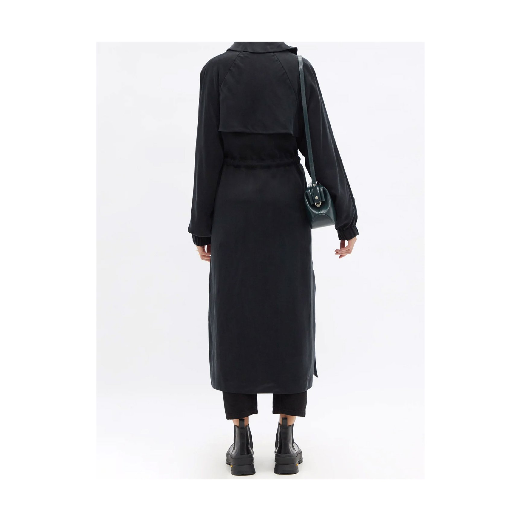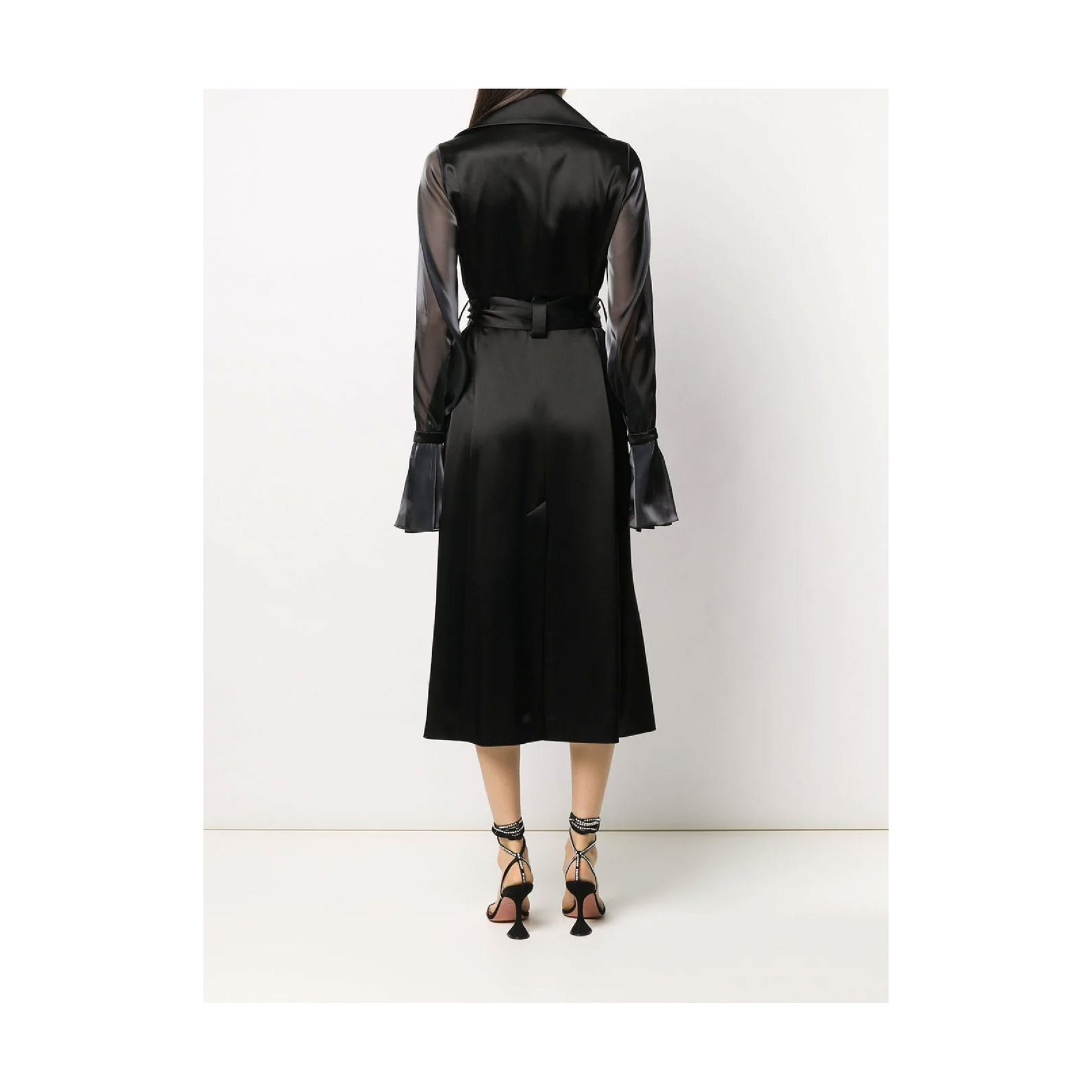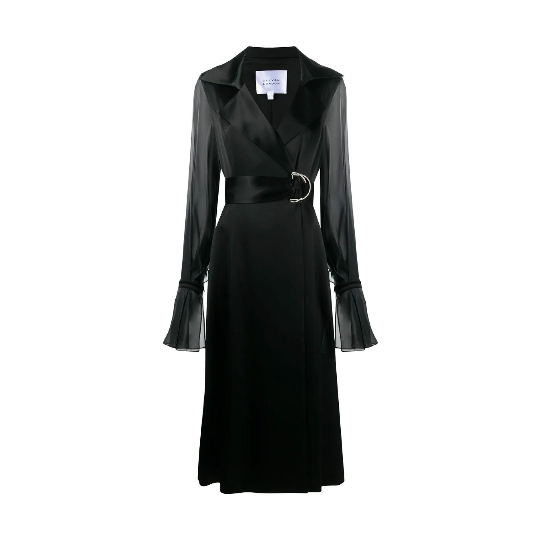 シースルーの袖口としなやかなラインが品を感じさせる「ガルバン(Galvan)」のトレンチコート。サテンのようになめらかなボディの素材感と、袖のシースルーが相性抜群。まだちょっと暖かい秋口でも、シースルーであれば無理なく着こなせます。