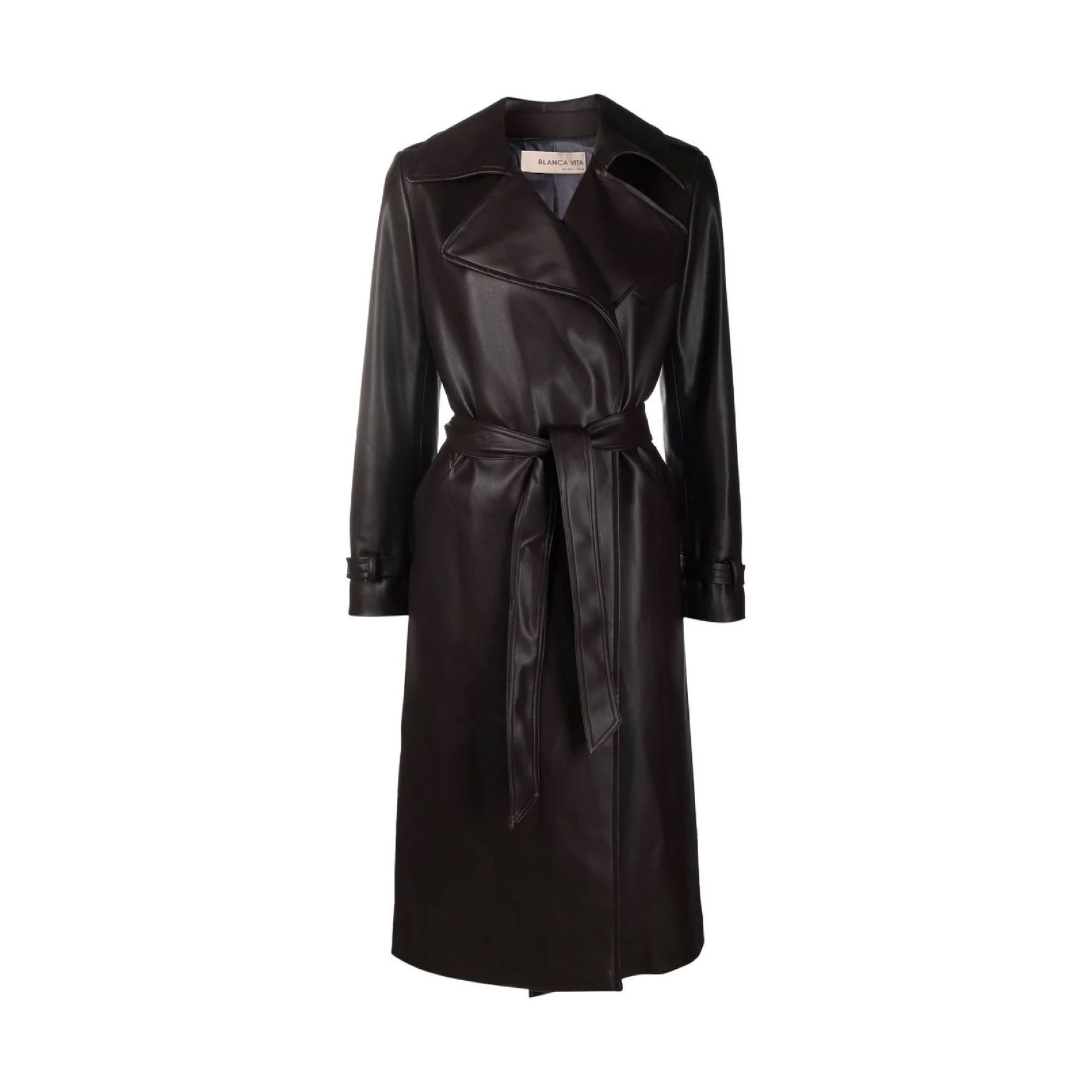 レザー調でクールなルックを決めてくれるのが「ブランカ ビータ(Blanca Vita)」のトレンチコート。光沢のあるポリ素材で、ロックになりすぎず軽やかなクールさを演出。ブラックのほか、ホワイトとグリーンのカラーラインナップがあります。