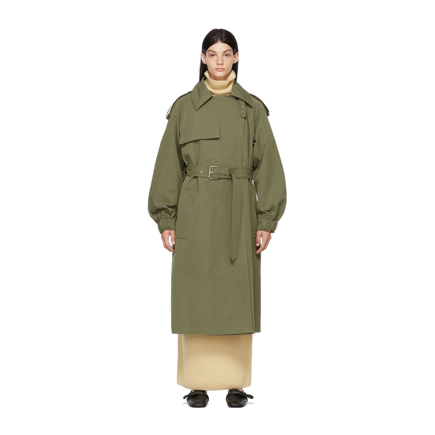 韓国ブランド「エルブイアイアール(LVIR)」からは、軍もの感溢れるカーキのトレンチコートがラインナップ。一見メンズライクなデザインに見えますが、ふわっとした袖口など細かなディテールが女性らしさを演出。一般的なトレンチコートとは異なる襟の形もワンポイントです。