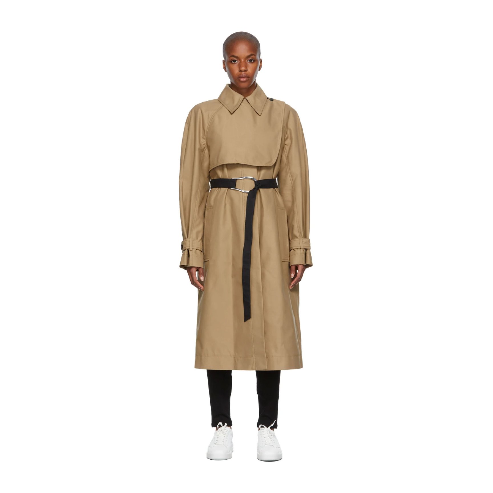 「ヴィクトリア ベッカム(Victoria Beckham)」のセカンドラインである「ヴィクトリア ヴィクトリア ベッカム(Victoria Victoria Beckham)」からはシンプルモダンなトレンチコートが登場。カラーや袖のシルエットは通常のトレンチコートらしさがありつつ、大きめの襟やウエストのブラックベルトが個性派ポイント。ベルトは取り外し可能なので、コーデや気分で組み合わせてみて。