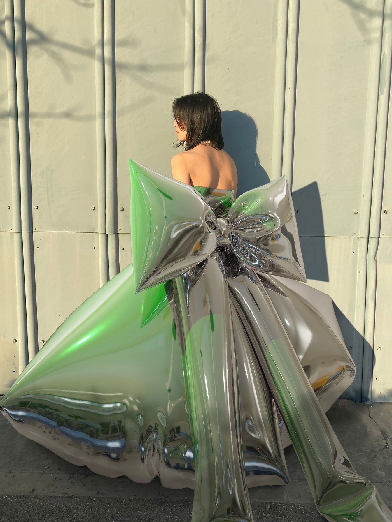 多摩川の土手にファッショニスタが爆誕していました。 「BALA」のような大胆なドレスは、なかなか現実では着る機会がないので、この主役感はサイバードレスならでは。FIDOの波打つ裾や、BALAのボウの影もしっかり再現されています。手元に届くのは写真データのみですが、新しい服を着ていく先がSNSくらいしかない今、数十ドルでこれだけインパクトある写真が撮れるならお手頃な気も。