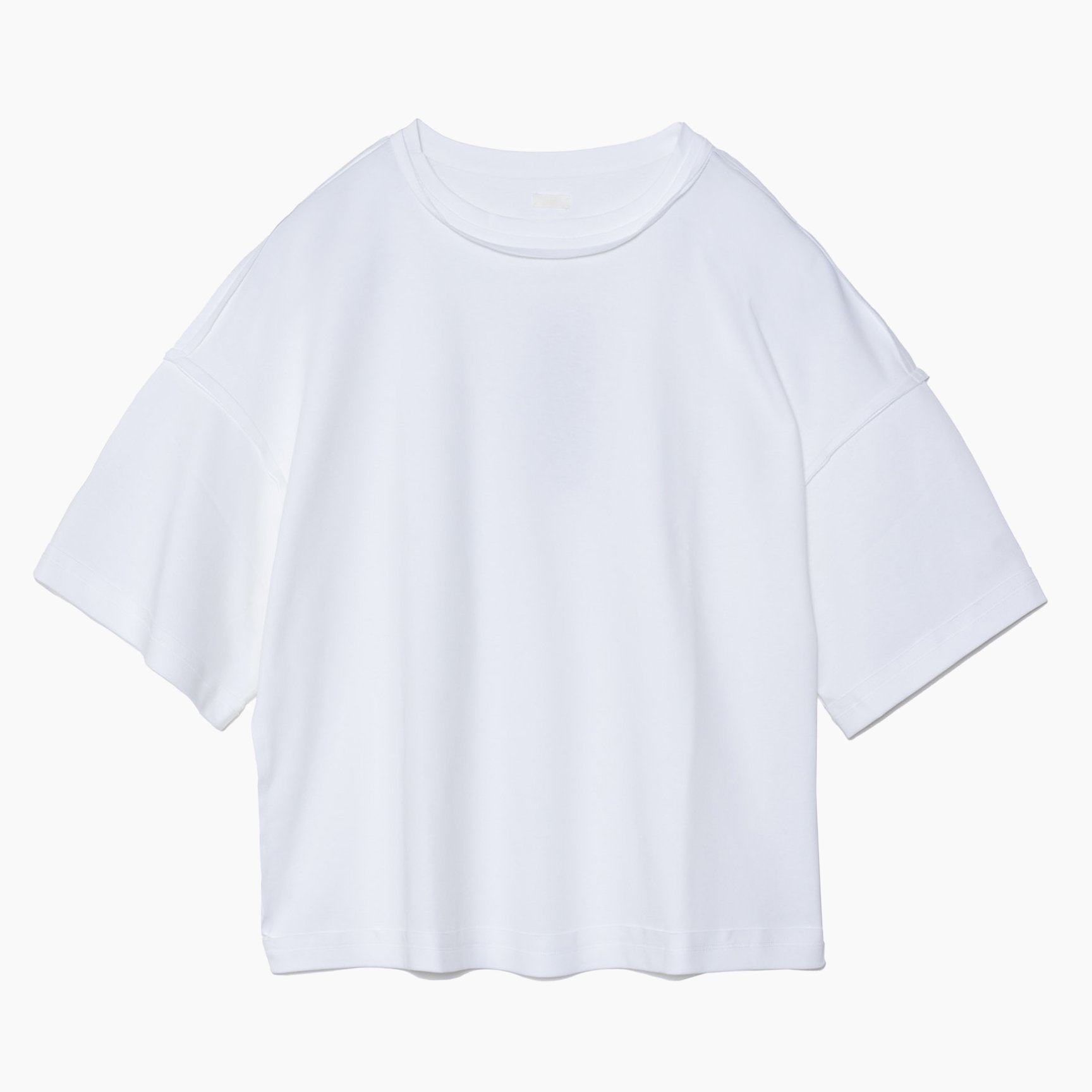 自身のスタイルを確立した人が着こなせるリアル・スタンダードなアイテムを提案し、大人の男女から愛されるブランド「エイトン(ATON)」。ブランドでも定番の白Tはオーバーなサイズ感が今っぽく、横幅に対し縦の比率が少し長いため、モードな印象が漂います。個人的にはTシャツ1枚に着丈の長いシャツと膝丈より短いハーフパンツを合わせて、丈感にメリハリを出したスタイルがオススメです。