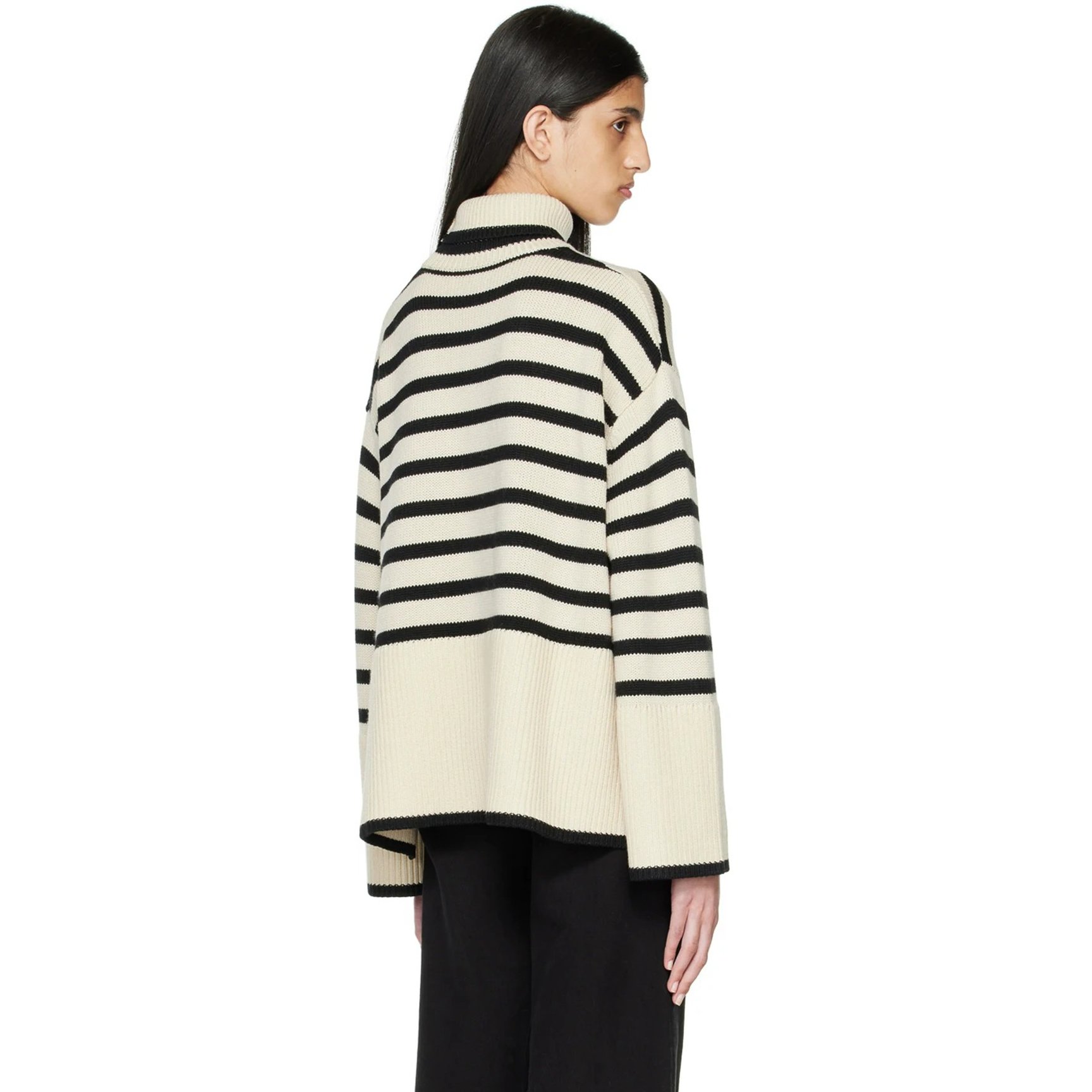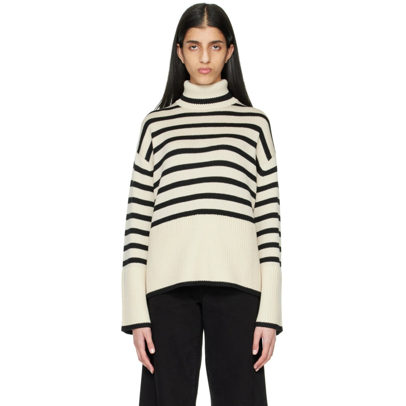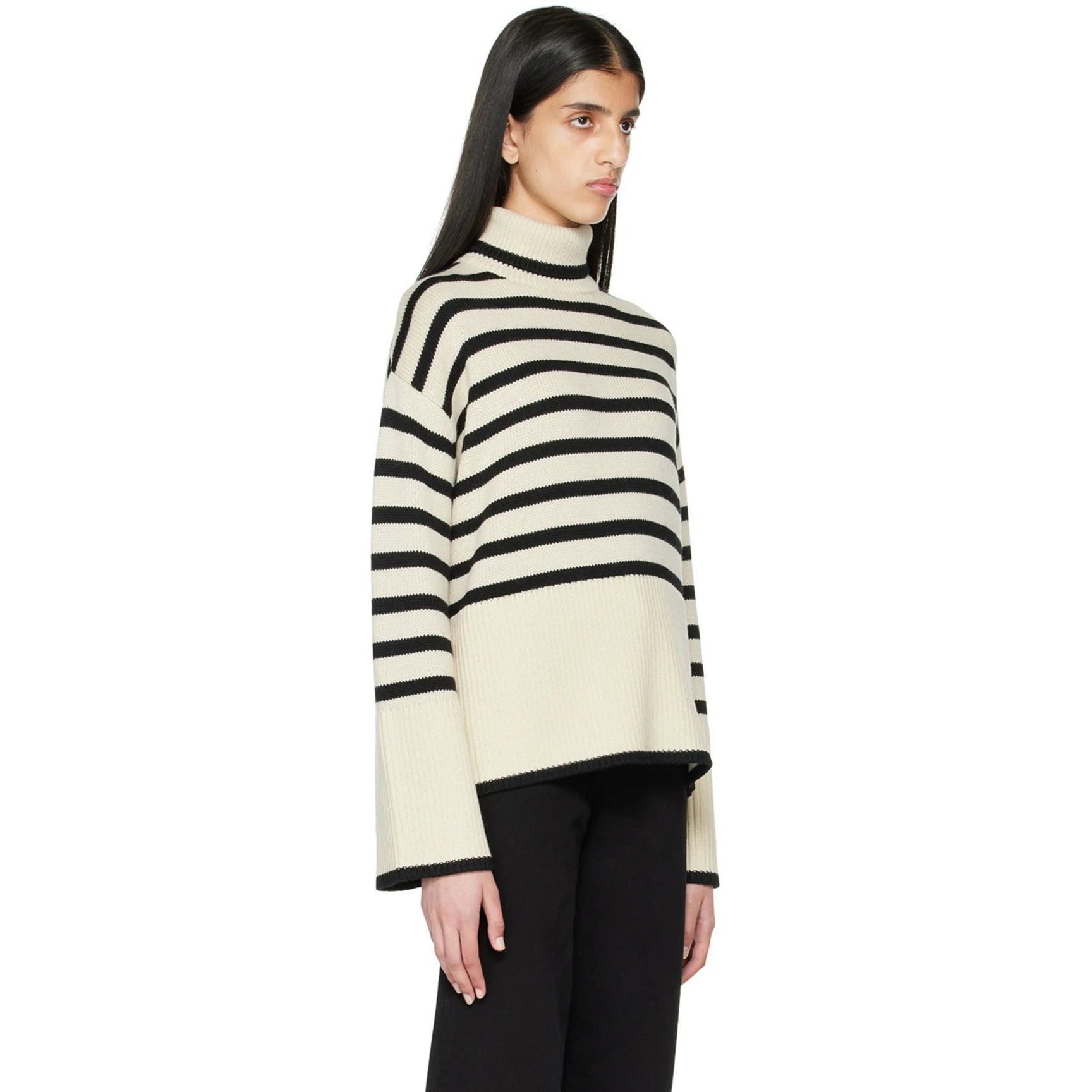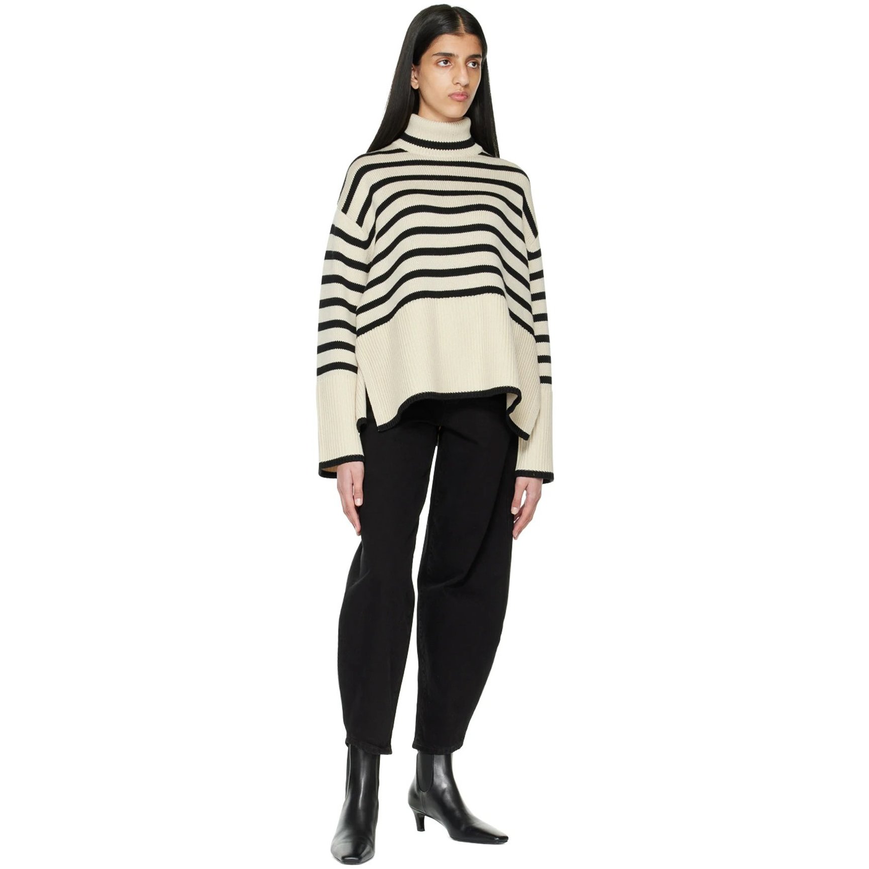 サイドにスリットが入っており、裾にかけてふんわり広がるシルエットが素敵な「トーテム(TOTÊME)」のセーター。ボーダーをあたたかいセーターで取り入れたら、冬のマリンルックが簡単に叶います。