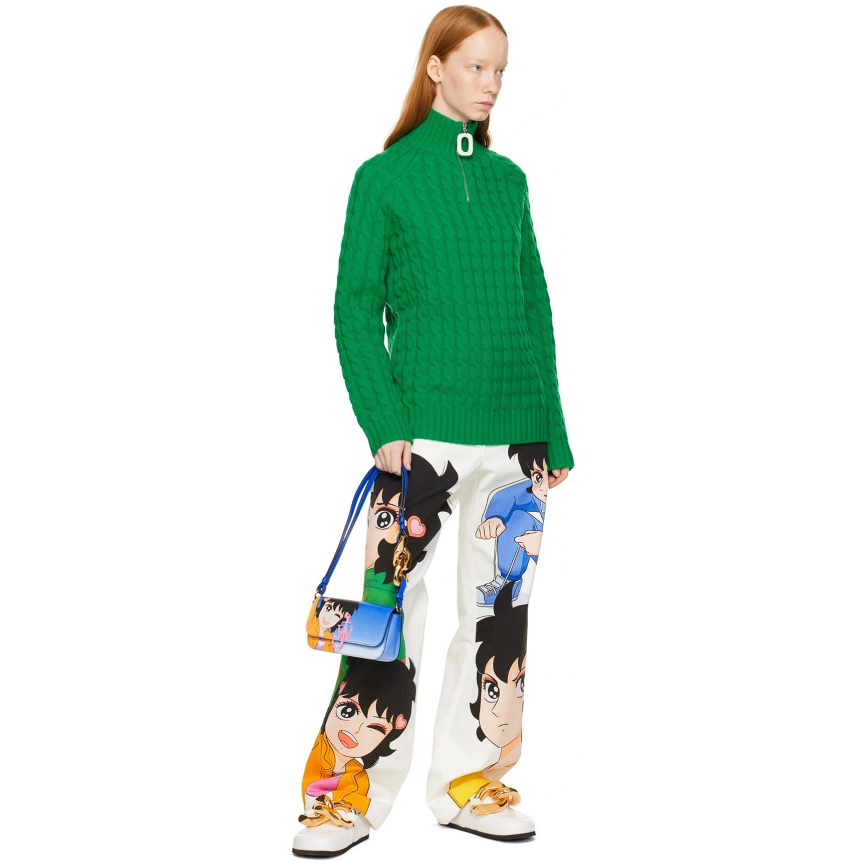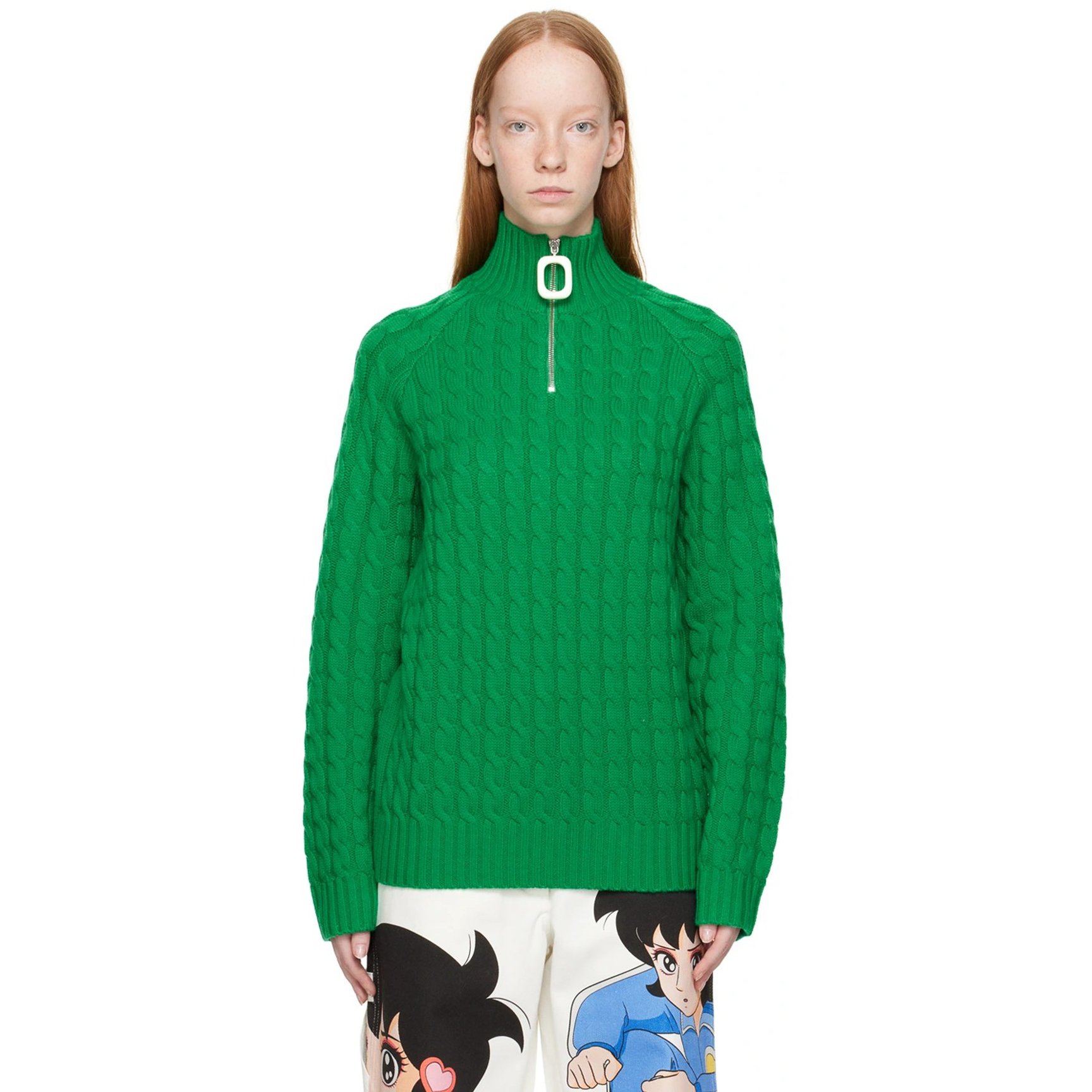 ケーブル編みと、ジップに付いたスクエア型の引き手にクラシカルなムードが漂う「JW アンダーソン(JW ANDERSON)」のセーター。トレンドライクなグリーンが装いを華やかに彩ります。