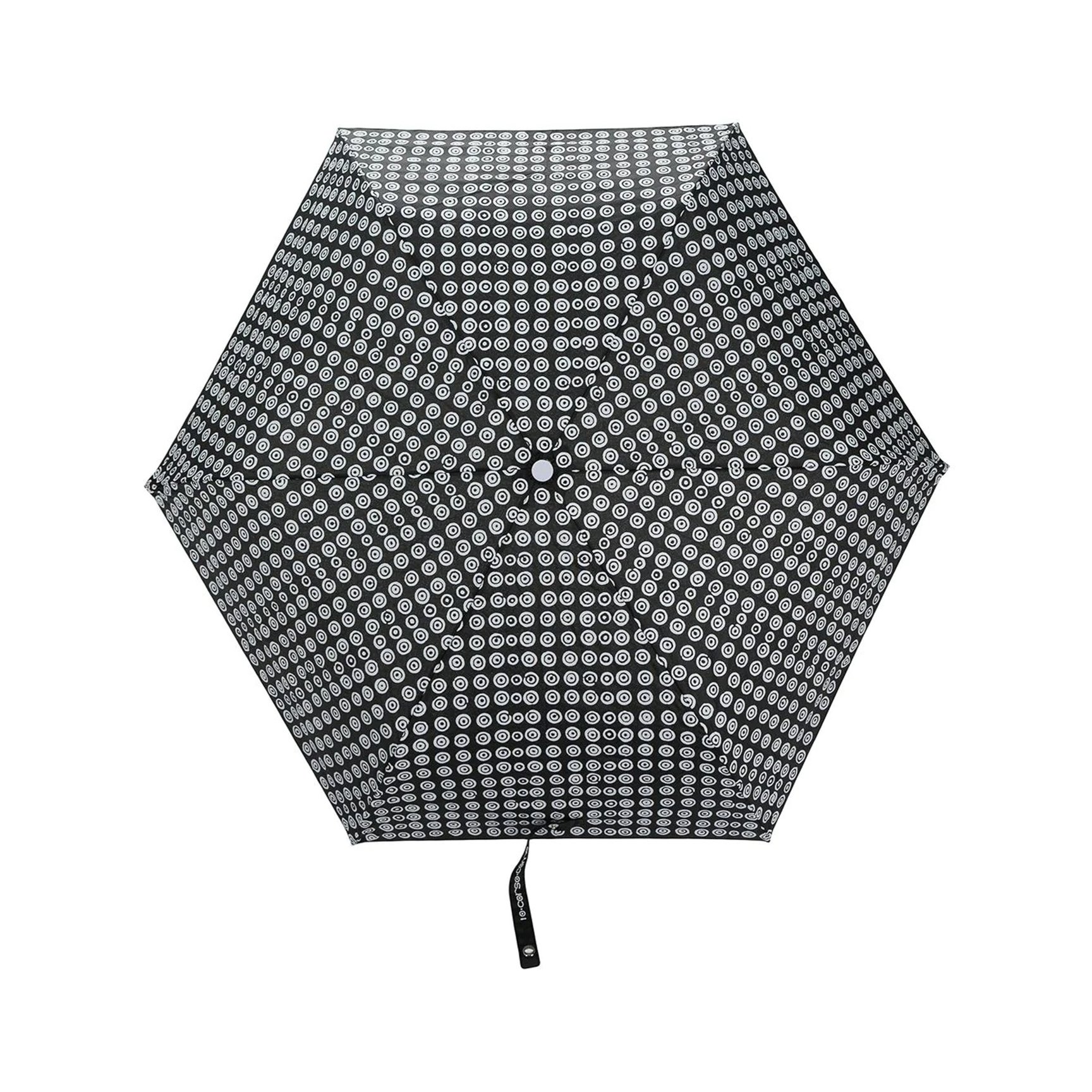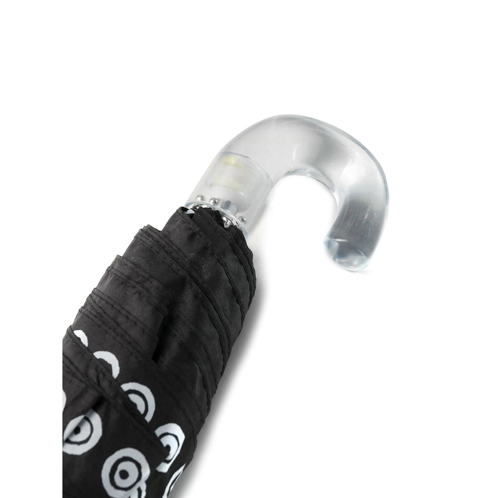 アイコンマークのポルカドットと、クリアハンドルが涼しげな印象を放つ「ディエチ・コルソ・コモ(10 Corso Como)」の一本。個性が光るドットが敷き詰められた折りたたみ傘は、サイズやグラフィックに変化を付けたデザイン違いにも注目。