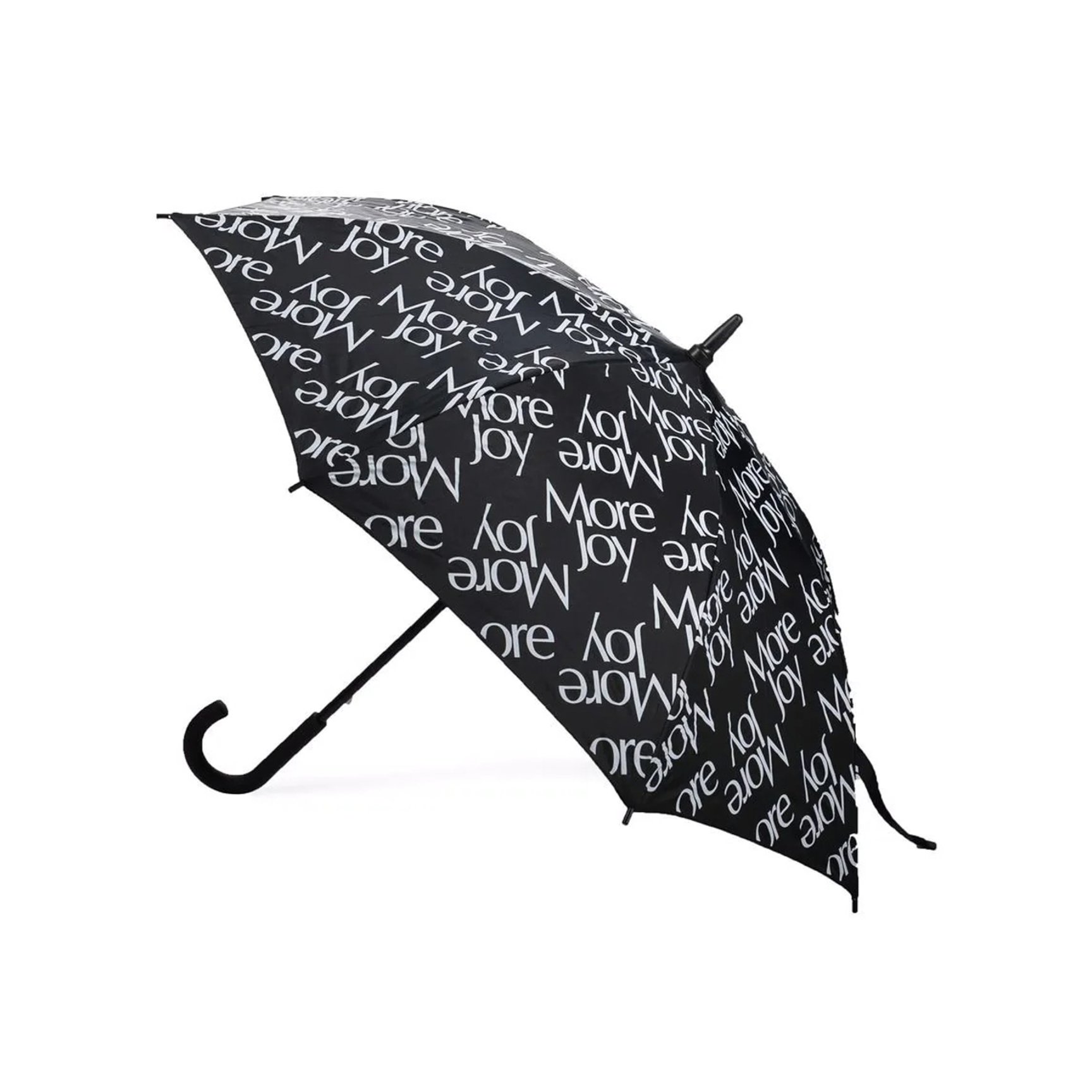 玄関や傘立てに置いてあるだけで絵になる、ベーシックなシルエットのおしゃれな長傘。「モア ジョイ(MORE JOY)」のたっぷりとロゴをプリントした、シックなモノトーンデザインはどんなスタイルにもマッチ。手にしやすいプライスも嬉しいポイントです。