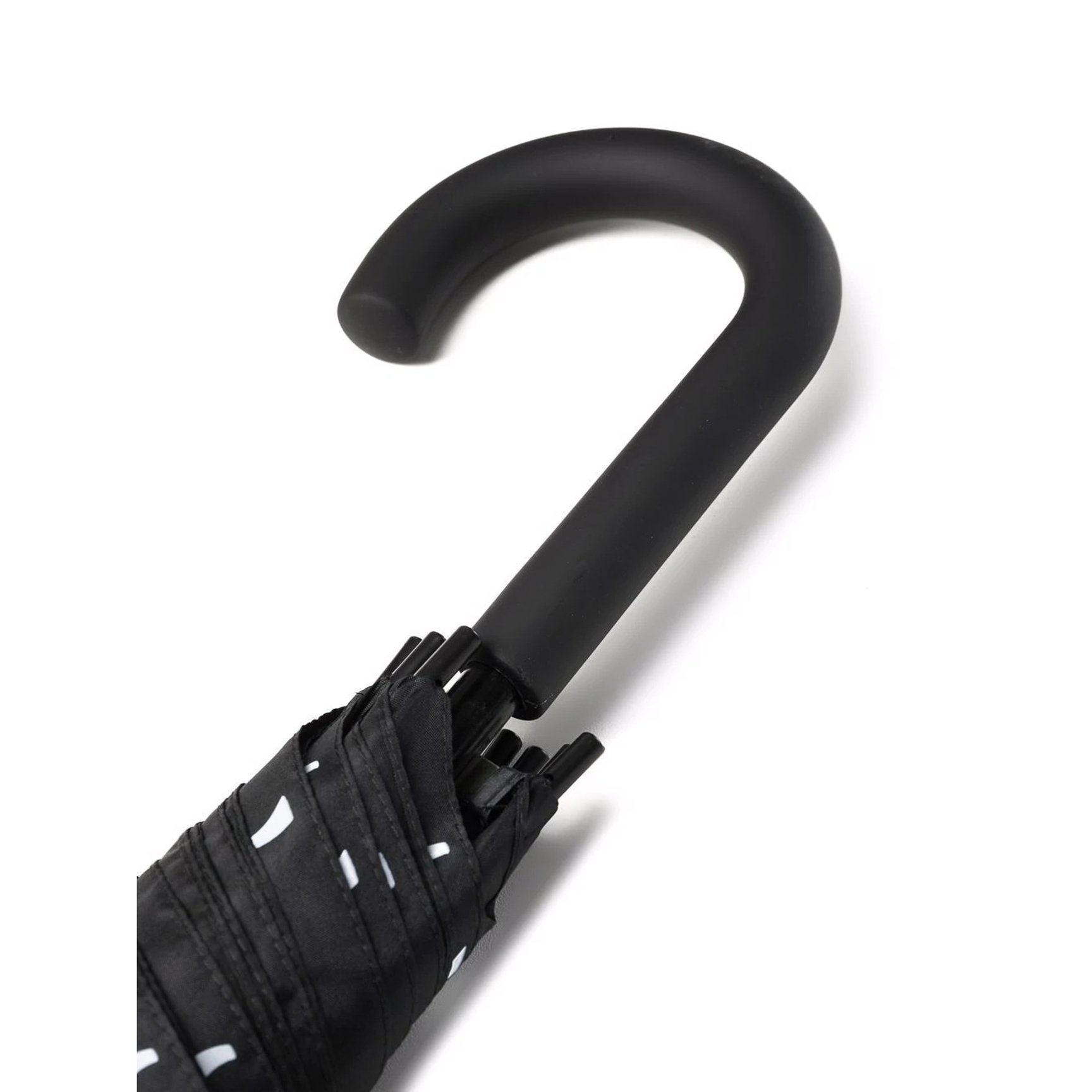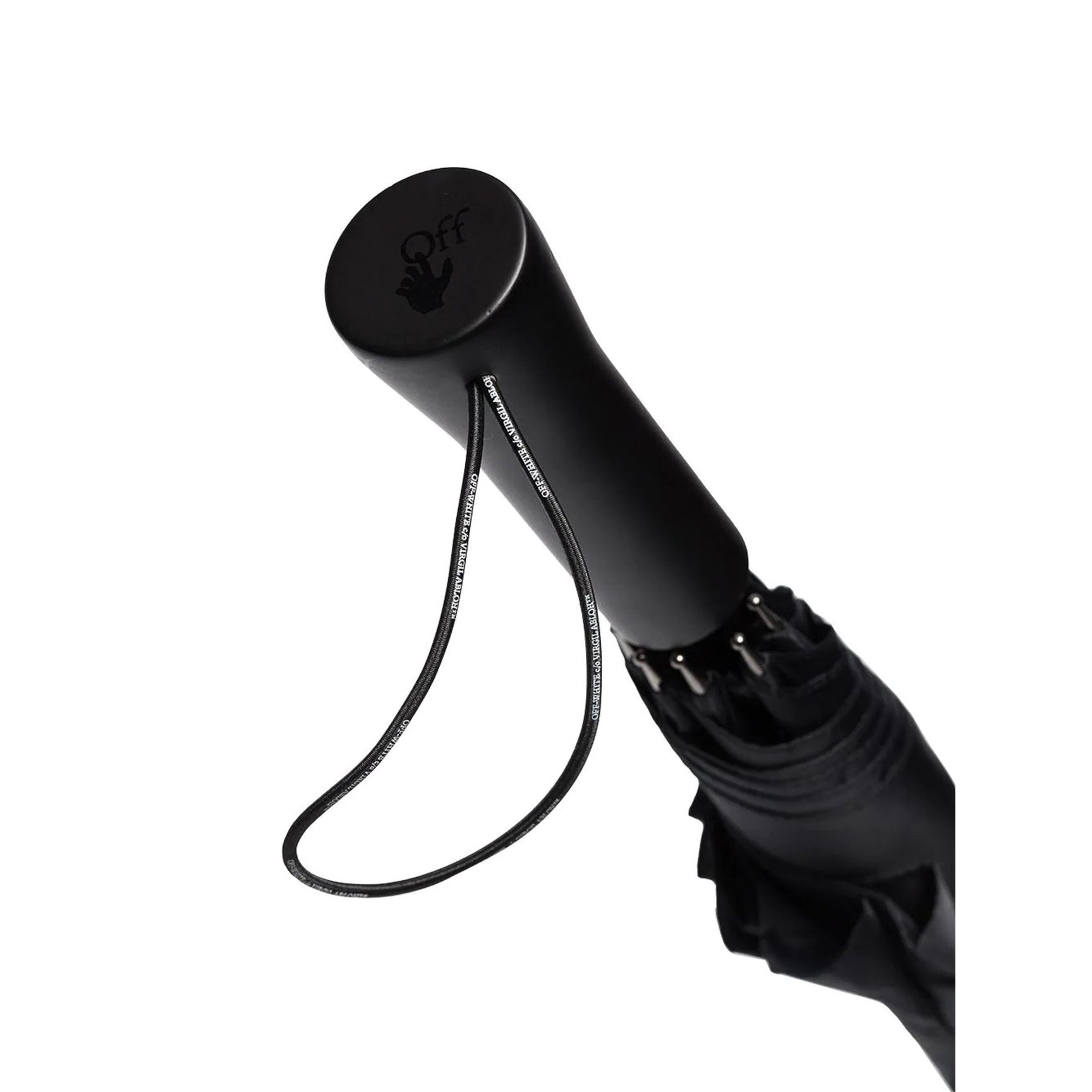 プレーンなブラックの傘に、シグネチャーロゴが静かにパッチされた「オフ-ホワイト c/o ヴァージル アブロー™(OFF-WHITE c/o VIRGIL ABLOH™)」のアイテム。装飾を削ぎ落したクールなデザインで、雨の日のおしゃれに差をつけて。