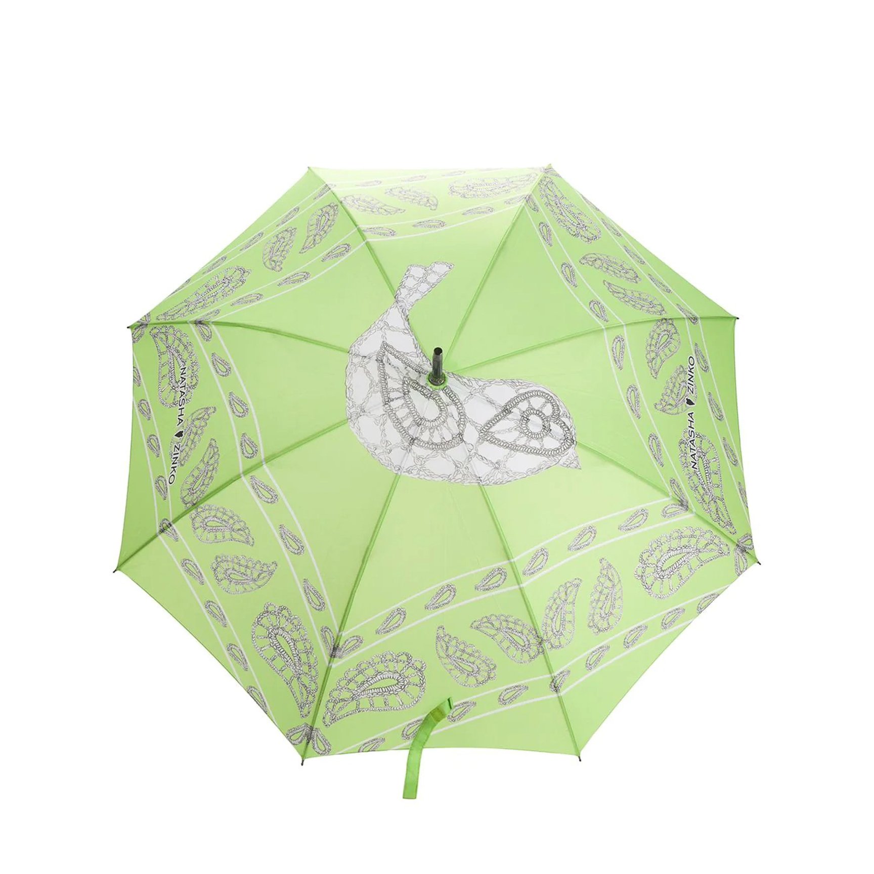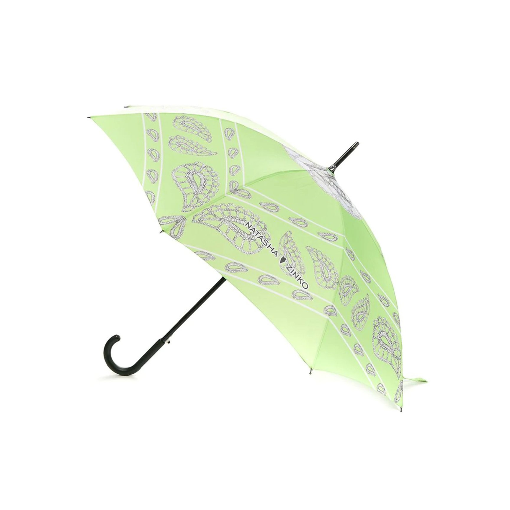 キュートなペイズリー柄に惹かれる、「ナターシャ ジンコ(NATASHA ZINKO)」の傘。ハッピーなエメラルドグリーンと頭上に描かれた鳥のモチーフが、雨天の度に気分を明るく照らします。