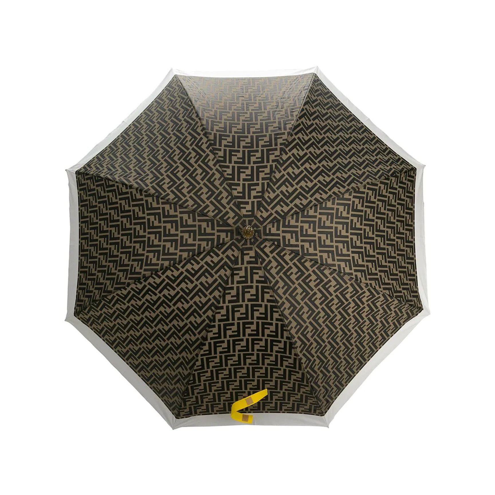 最後にご紹介するのは、FFモノグラムにイエローのロゴがアクセントになった「フェンディ(FENDI)」の傘。オンオフ兼用で使えるハンサムなムードを放つアイテムは、雨の日の相棒として頼もしく寄り添ってくれるはず。