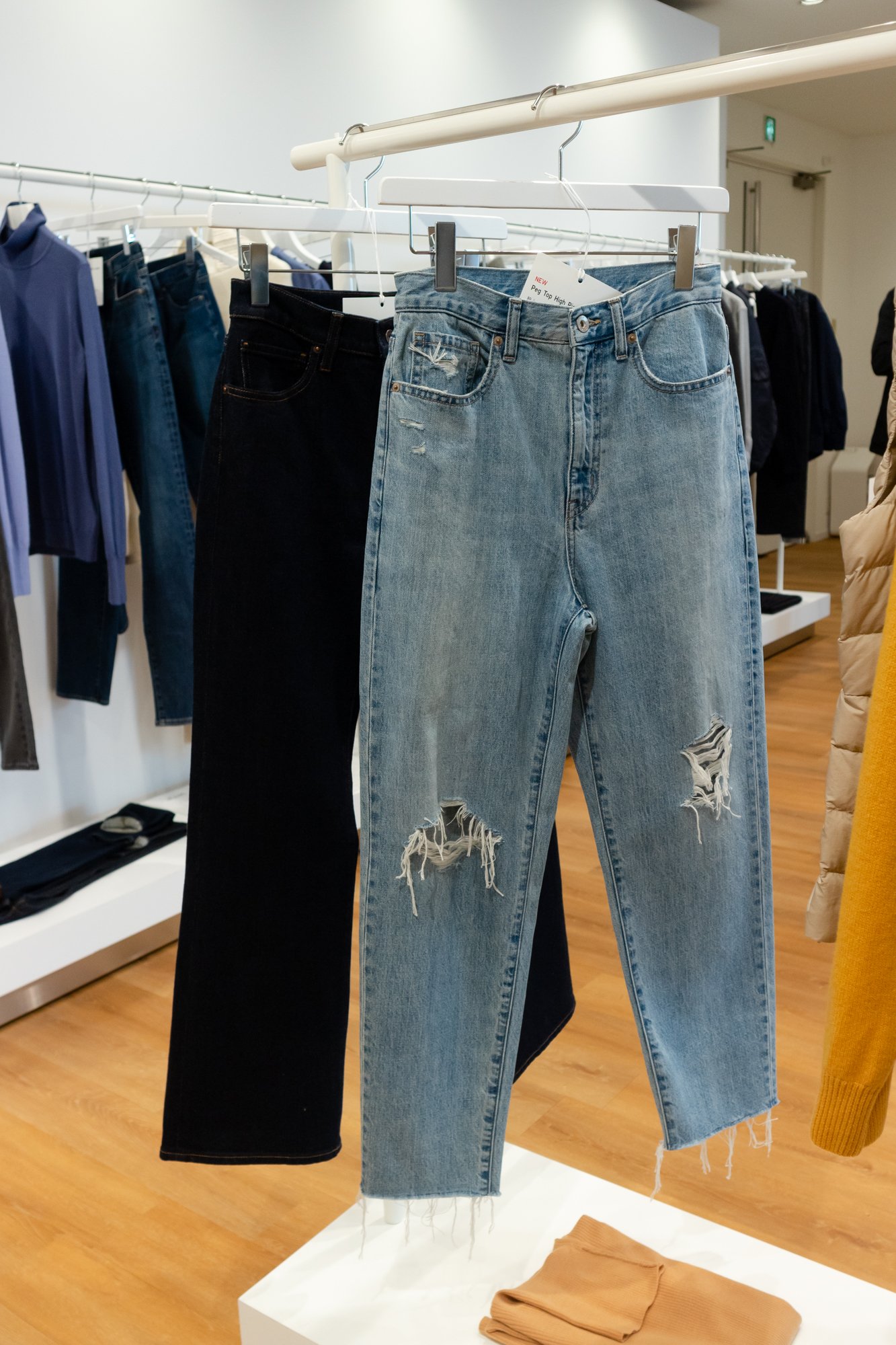 女優の綾瀬はるかさんを起用したテレビCMの影響もあり、好調だというジーンズ。ハイライズ化したことで脚長効果もあることでウィメンズで人気を集めています。今シーズンはスキニーやセミフレアといったシルエットの新商品が登場。ダメージ加工をあしらったモデルなど様々なアイテムを展開します。