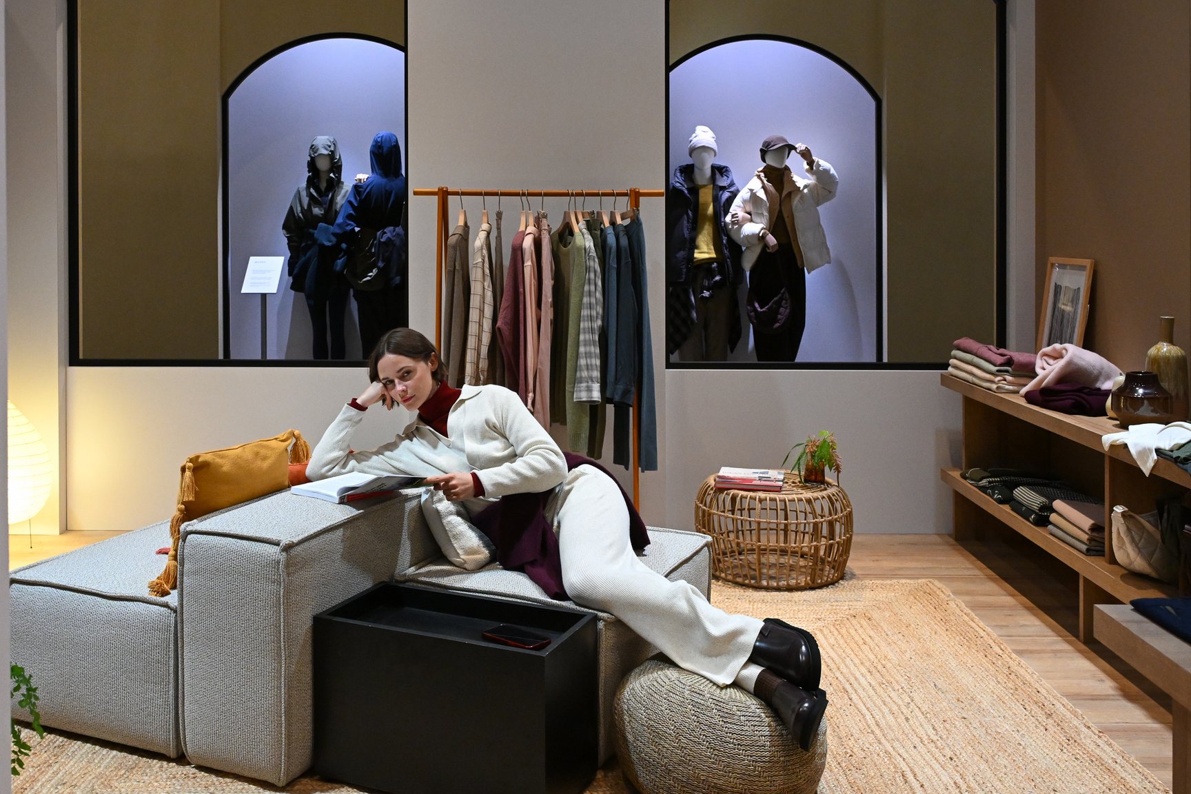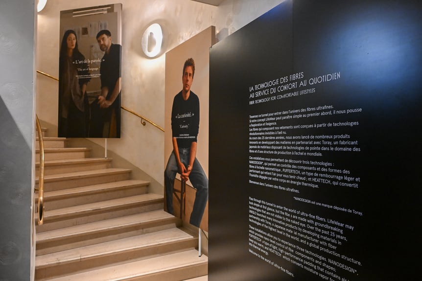 入口をくぐるとすぐお目見えするのは、パリのアパルトマンをモチーフにした、キッズ、スポーツ、アウトドアなど暮らしを彩る6つのテーマの部屋。さまざまな人種のモデルが「LifeWear」の24年秋冬コレクションを纏い、その部屋に暮らす人やライフスタイルを表現した。