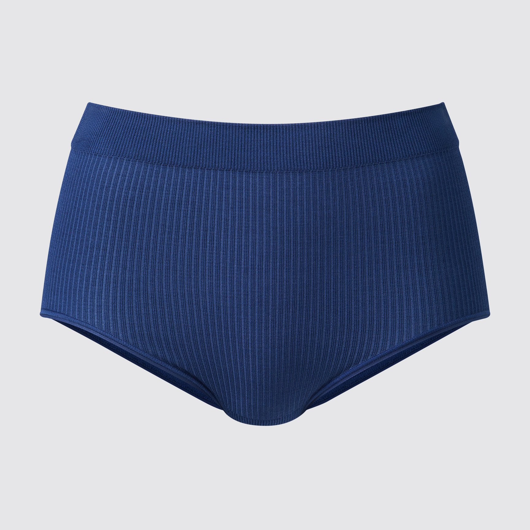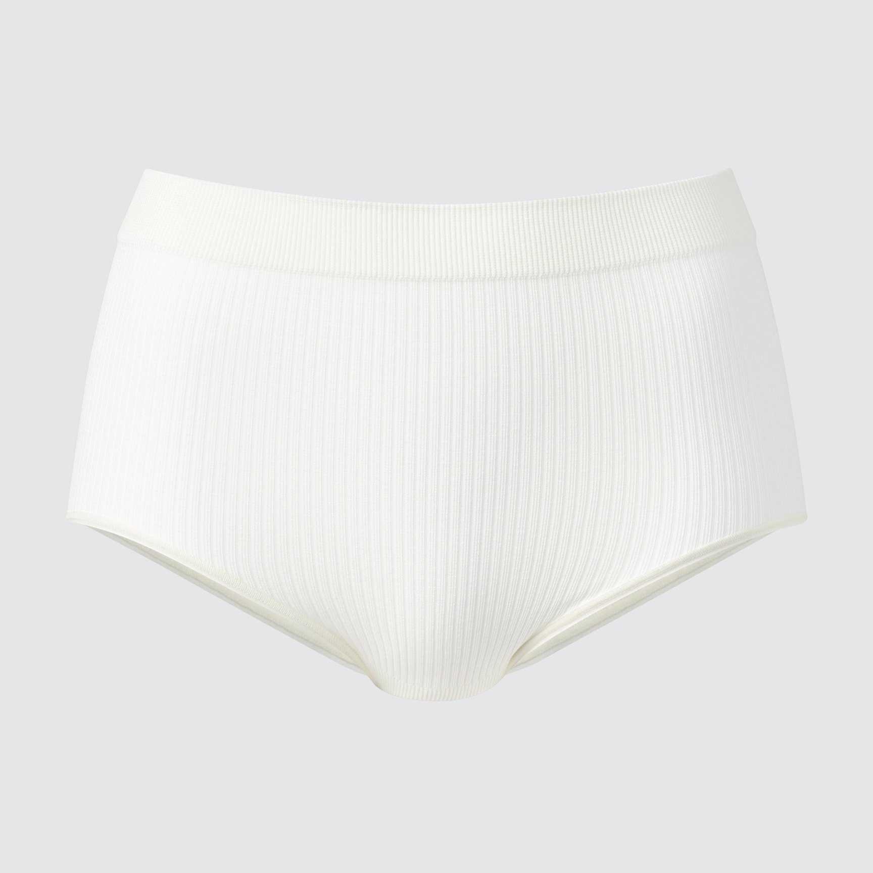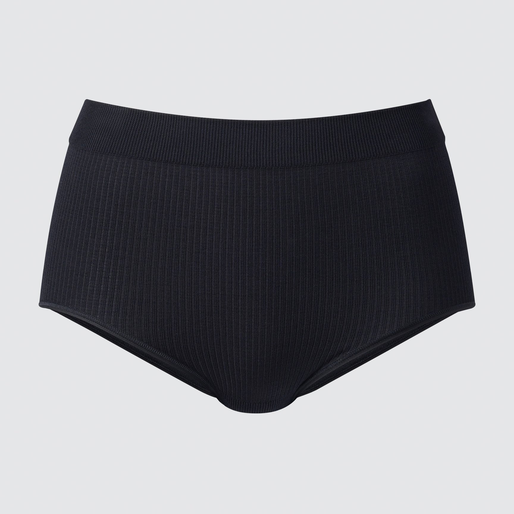 ジャストウエスト丈のショーツをリブ編みにすることで、デザイン性とフィット感の両方を実現。肌当たりの良さを追求し、脇に縫い目が少ないシームレス仕様で仕上げました。