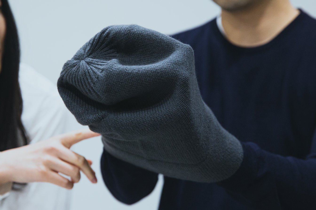 編集A:着用した時にフィットする小技ですね。ローゲージのカシミヤで2990円です。大人がかぶる、上品なニットキャップという印象。