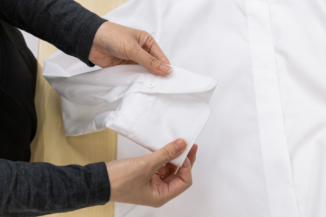 編集A:袖のボタンの位置も面白いですよ。袖口が開くようになってる。