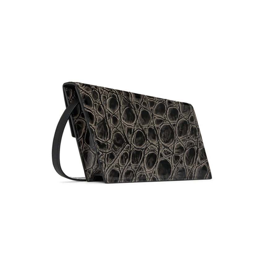 「アクネ ストゥディオズ(Acne Studios)」の「ディストーション」バッグ。パテントプリントで表現したクロコ柄がリュクス感を漂わせます。取り外し可能なショルダーストラップ付き。