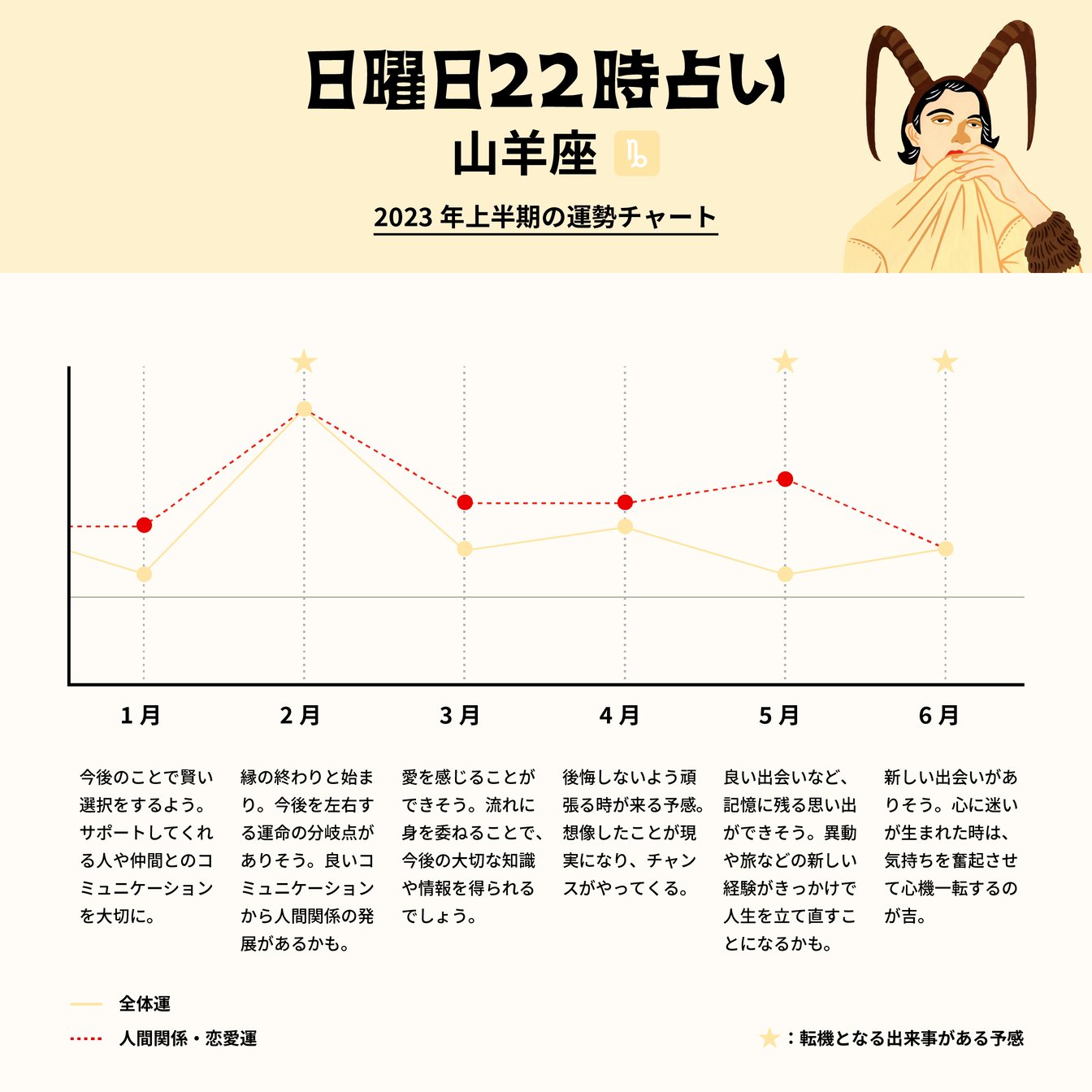 山羊座(12月22日〜1月19日生まれ):2023年上半期の全体運と人間関係・恋愛運