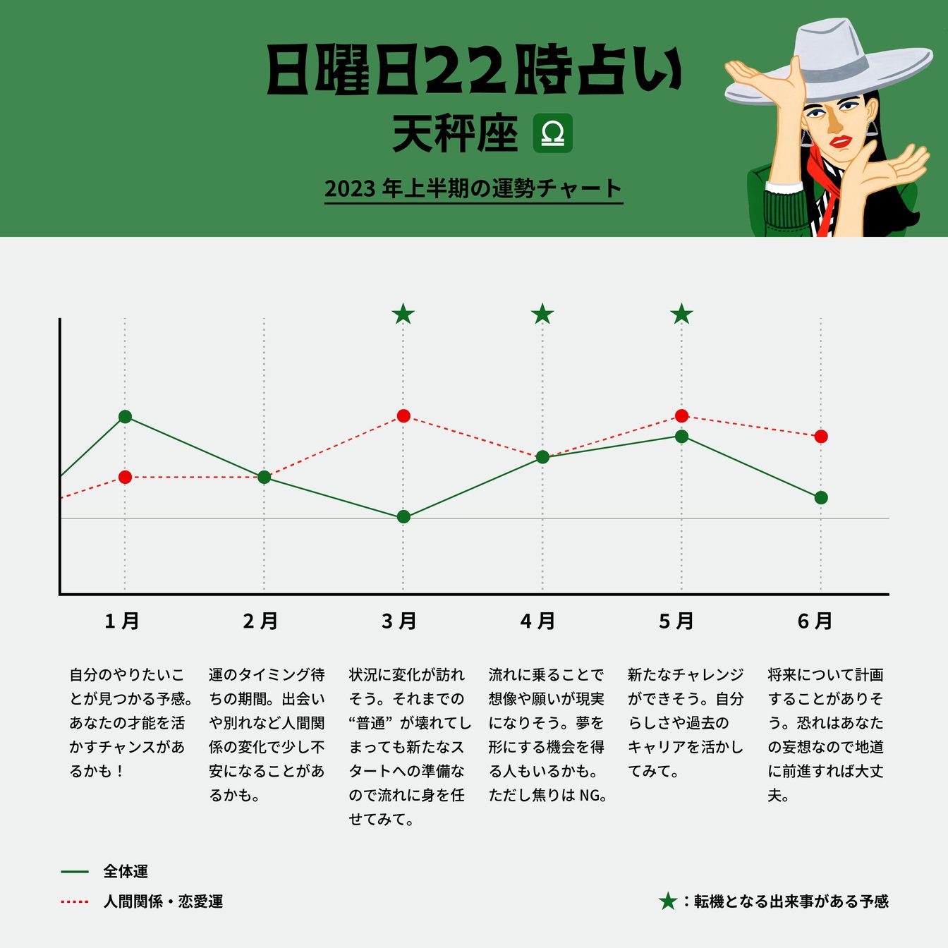天秤座(9月23日〜10月22日生まれ):2023年上半期の全体運と人間関係・恋愛運
