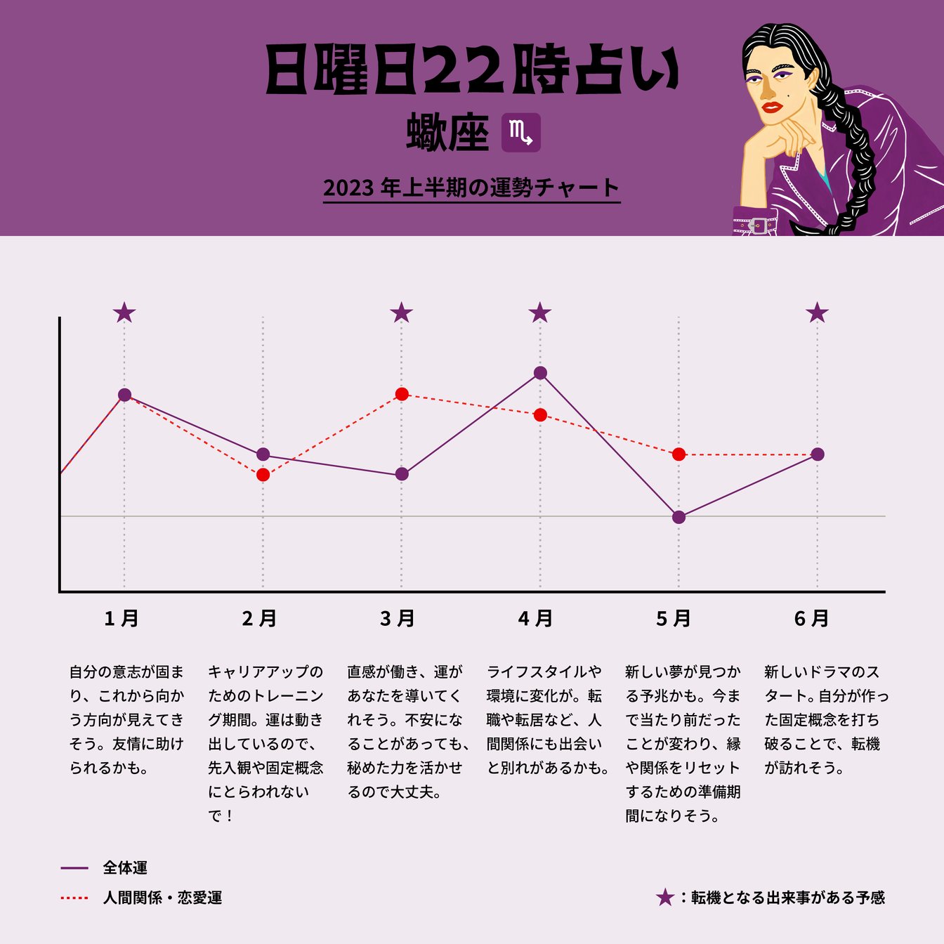 蠍座(10月23日〜11月21日生まれ):2023年上半期の全体運と人間関係・恋愛運