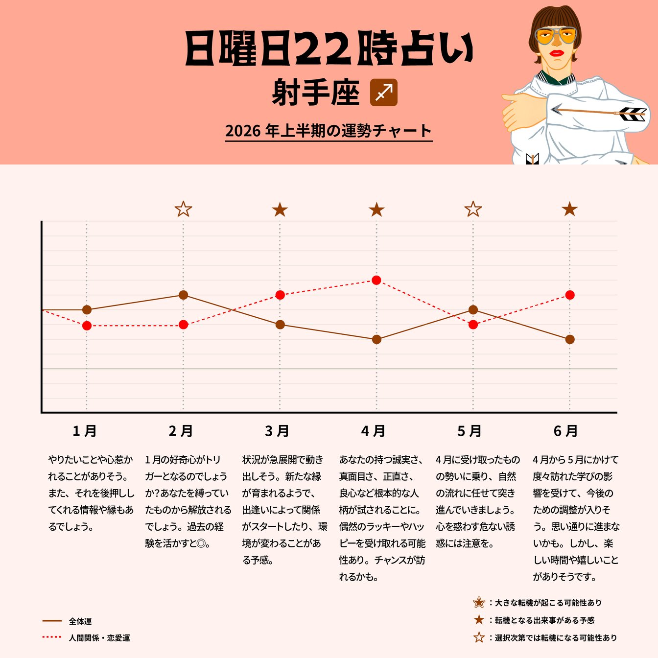 2026年上半期では、日々のあらゆる場面において新たな経験をするためのきっかけ、そして未来の行方を決める分岐点が度々訪れそうです。あなたがそれに気づくかは分かりませんが、その時々であなたがその状況をどう捉え、どのような選択をするのかで未来が代わり、新たな日常へと切り替わることになるでしょう。