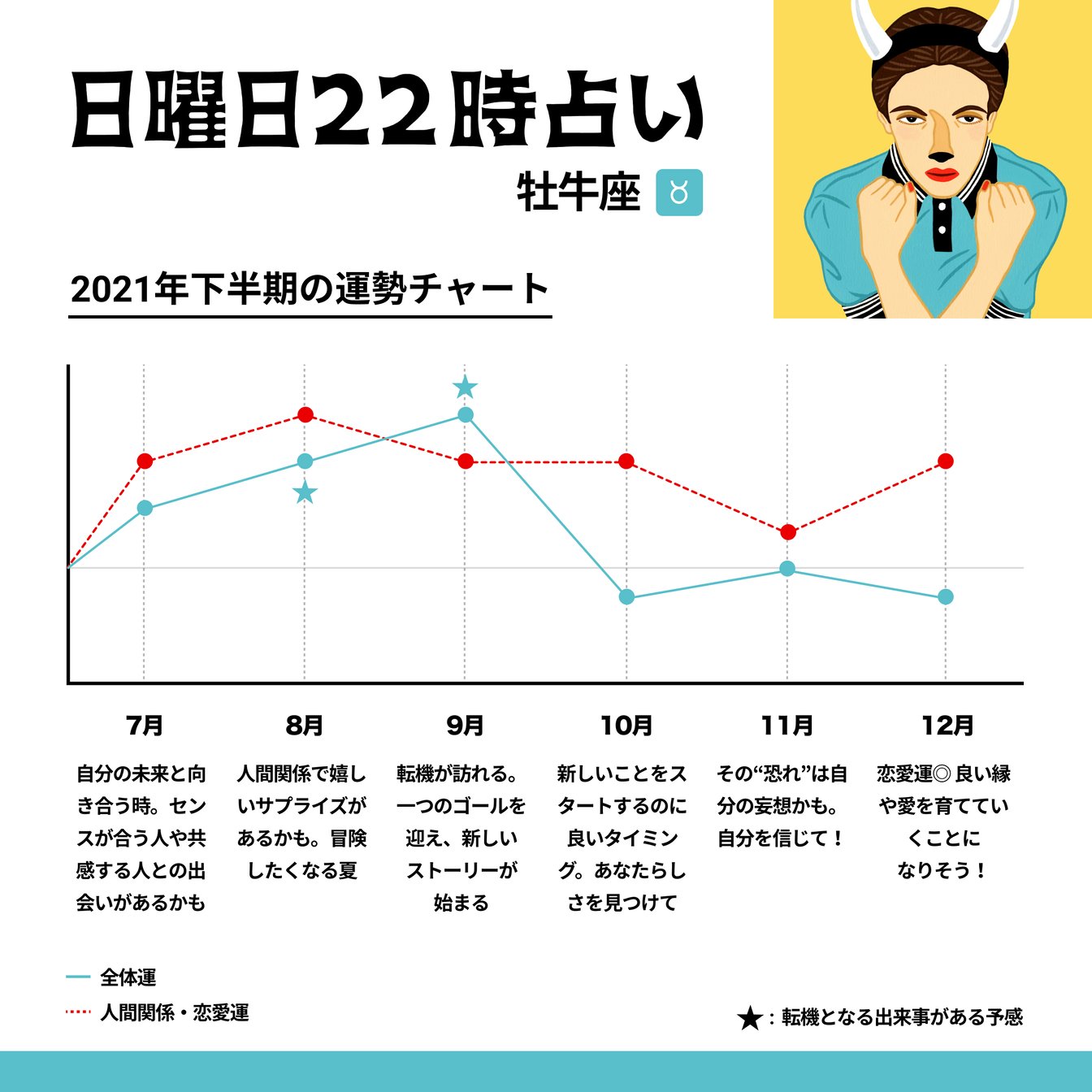 あなたの「ゴール」がようやく定まってくるようです。この下半期は、そこに向けてゆっくりと軌道を正していくことになるでしょう。そこで牡牛座のあなたらしいと言いますか……ゆっくり、じっくり、焦ること無く自分の未来の焦点を捉え進んでいくことで、確実な土台を作っていくことができるようです。焦ることなく、スローに進める方が良いのです。細かな修正と見直し、気持ちを切り替えていくことも大切。誰かのストーリーではなく、あなたのオリジナルの道を描いていくんですから。人生の修正とアップデートが、未来の土台になっていく時期ですよ。