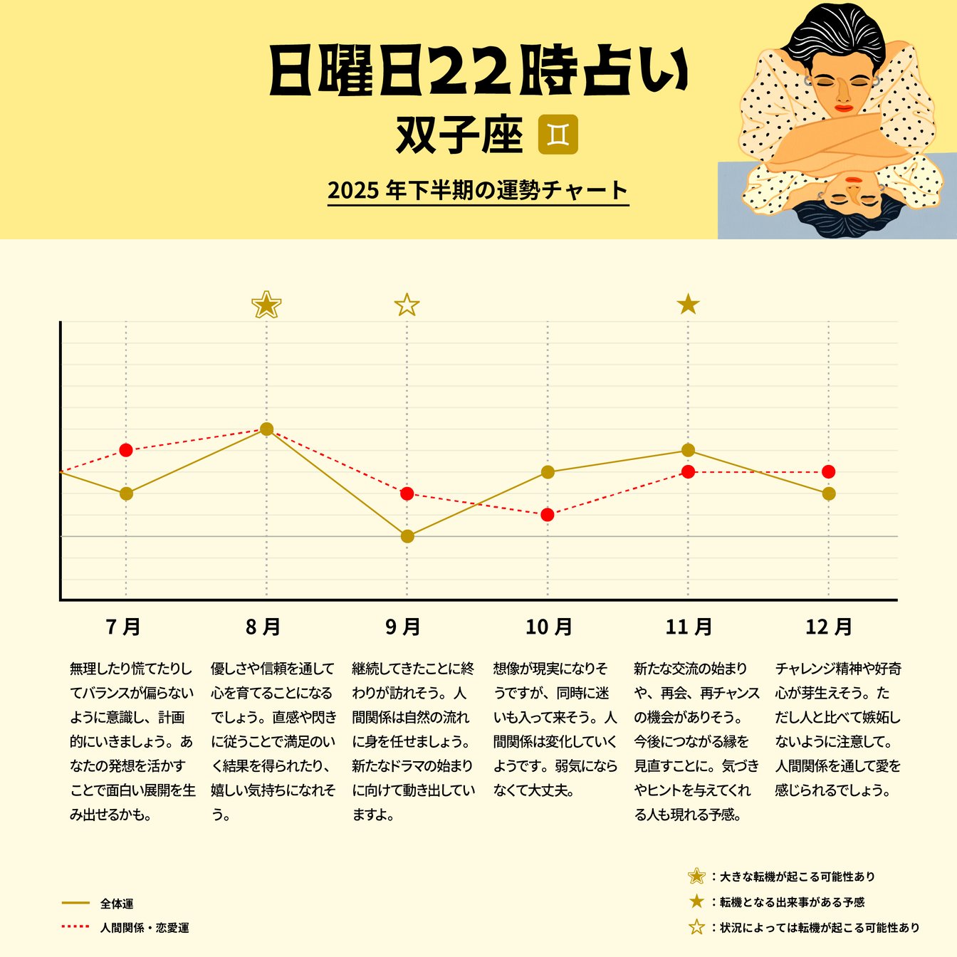 双子座(5月21日〜6月20日生まれ):2025年下半期の運勢は?