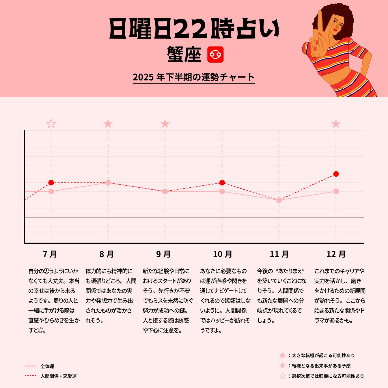 蟹座(6月21日〜7月22日生まれ):2025年下半期の運勢は?