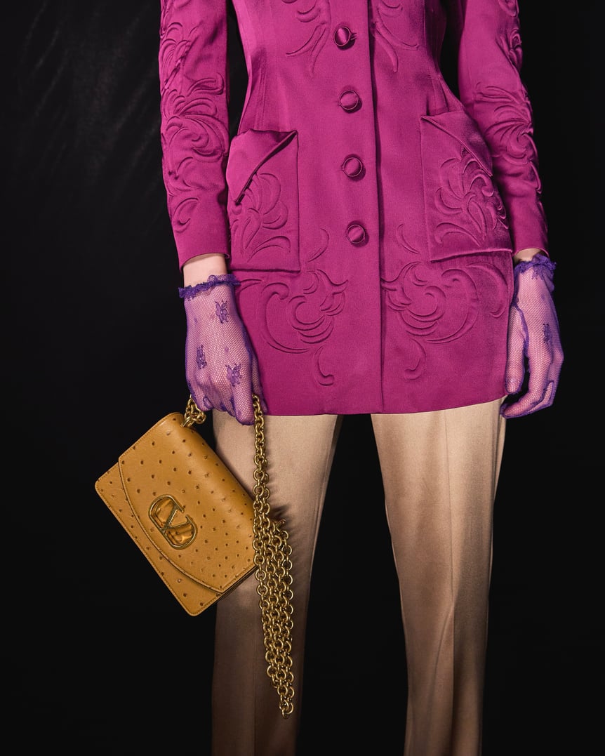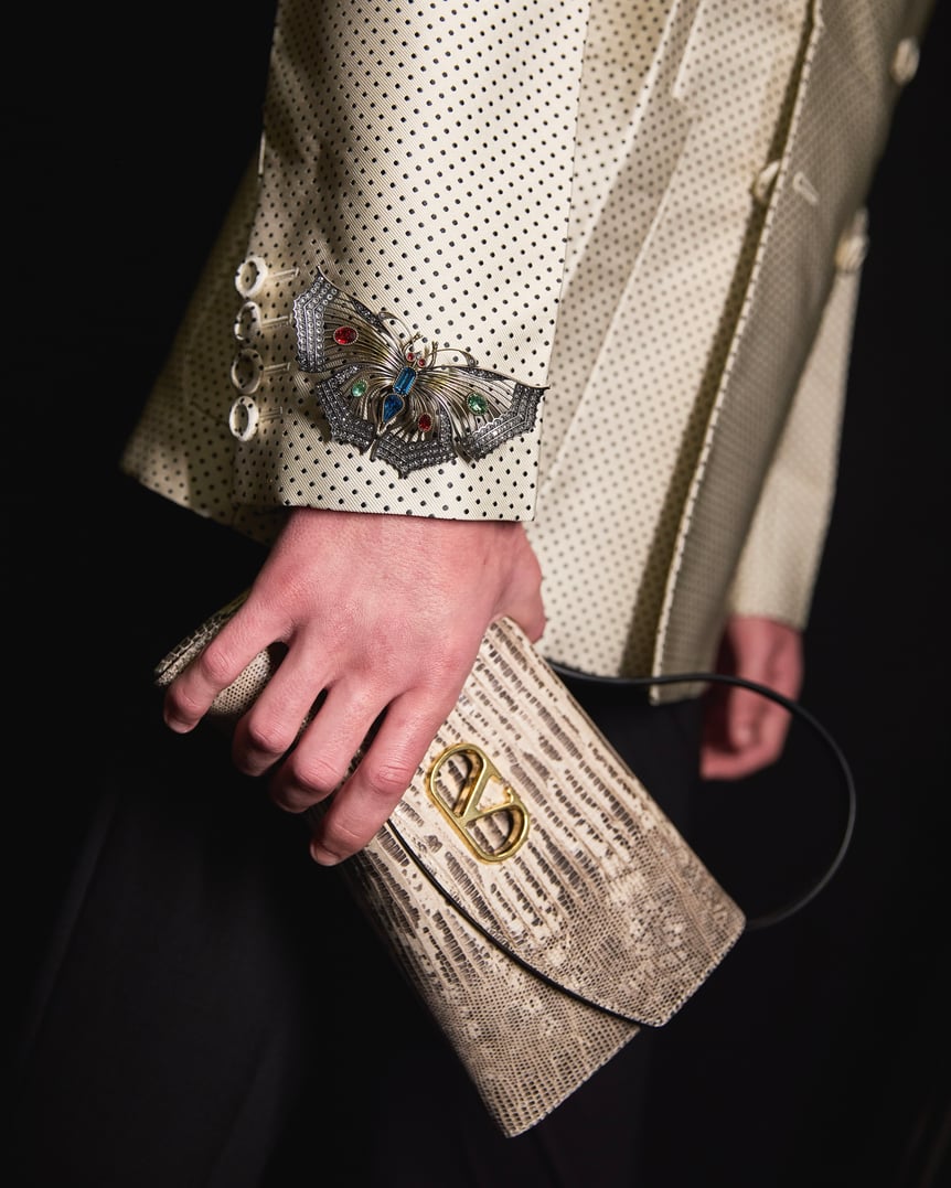フリル、ラッフル、ポルカドット、リボン、シノワズリ、トルコパンツ、オリエンタリズム、そしてヴァレンティノの核たるロマンティシズムといった創業者の象徴的なコードを、ミケーレ流にアレンジ。60年以上続く歴史を再認識しつつ、彼自身のヴァレンティノを始めるための基盤を築いた。