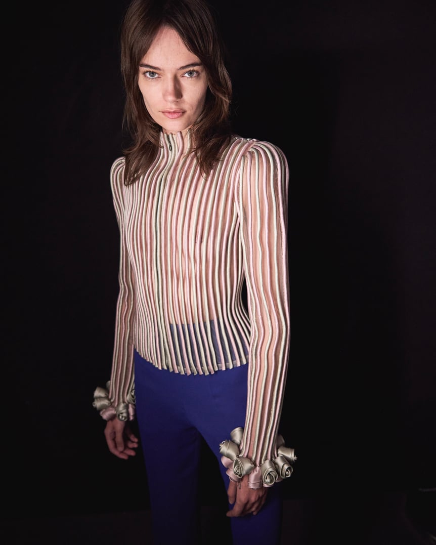 主要メゾンの体制刷新が続く、激動のモード界。新任のクリエイティブディレクターに課されるのは、創設者が築いたメゾンの核を護り、再定義しながら、自身のヴィジョンを鮮明に示すこと。歴史への深い造詣と折衷主義のクリエイションで知られるミケーレもその例に漏れず、ヴァレンティノ就任に際しては、ヴァレンティノ・ガラヴァーニ(Valentino Garavani)が確立した美学とデザインを徹底的に掘り下げることから着手していた。