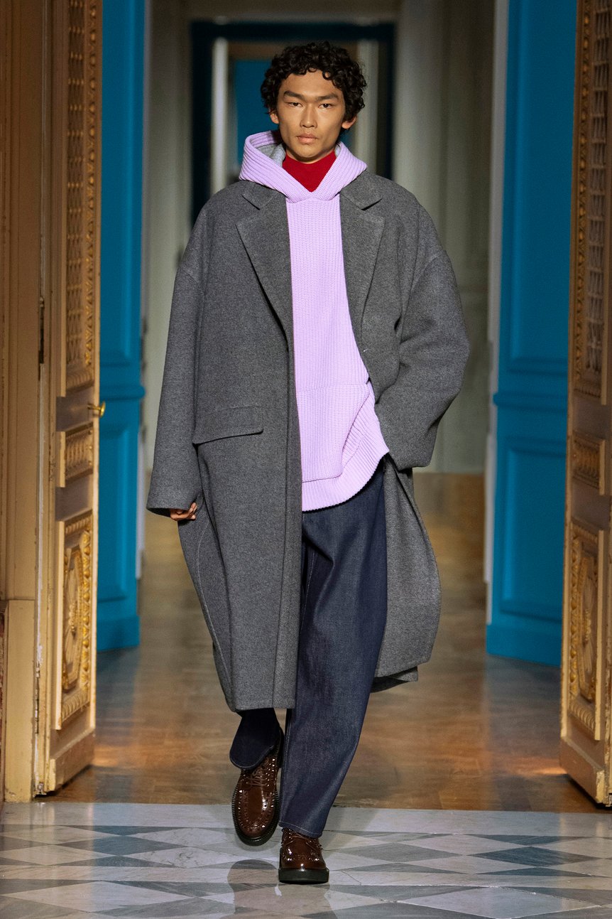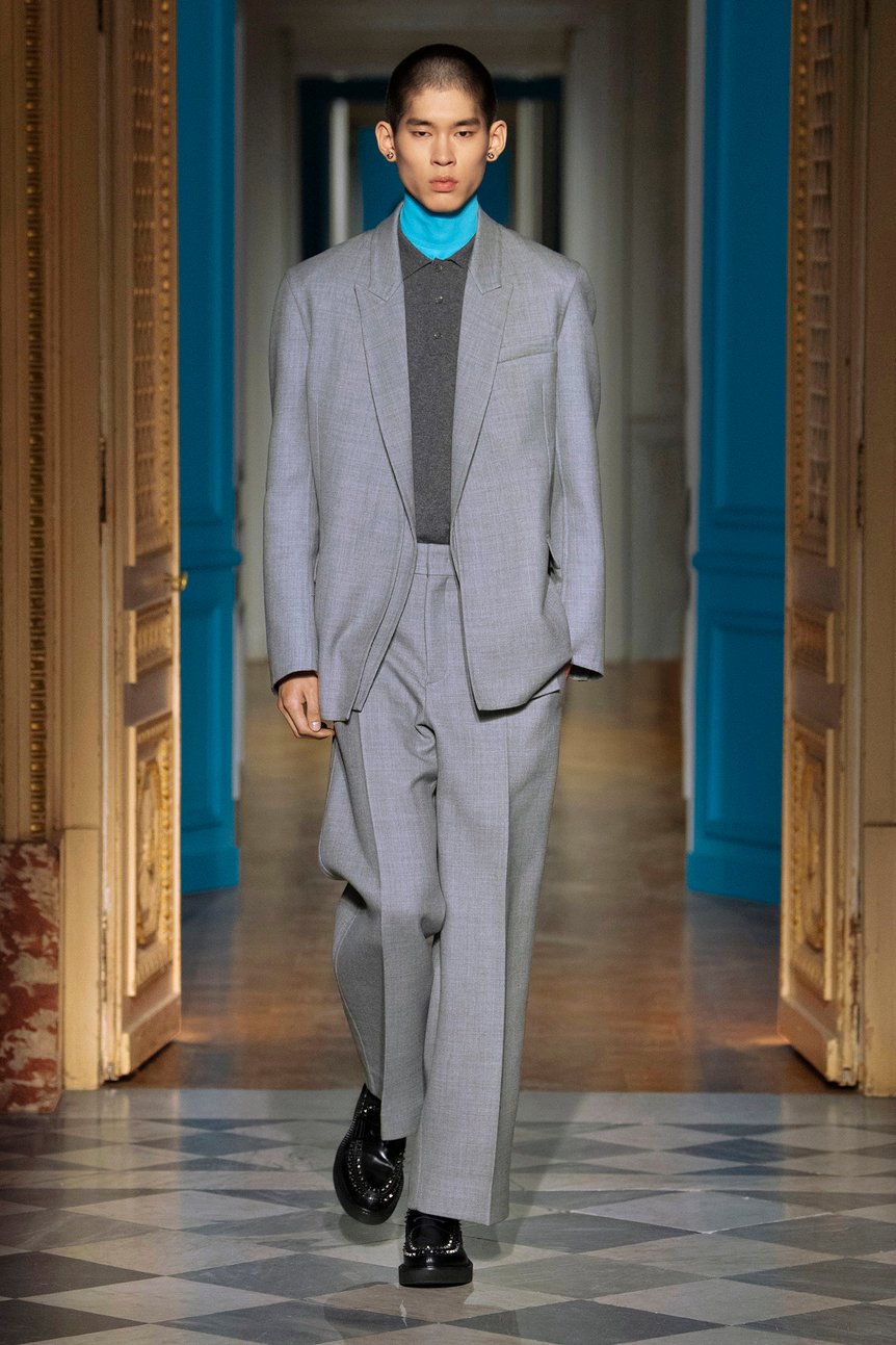 コレクションのタイトルは、フランス語で青空を意味する"Le Ciel 20.24"。「ブルーを解放して再考し、変化した男性的な意識を表現した。自由な思想を象徴するスカイブルーは、視野を広げて男性とは何か問いかける実験的な手段だ」と、スカイブルーにフォーカスして自由な男性像を描いた。