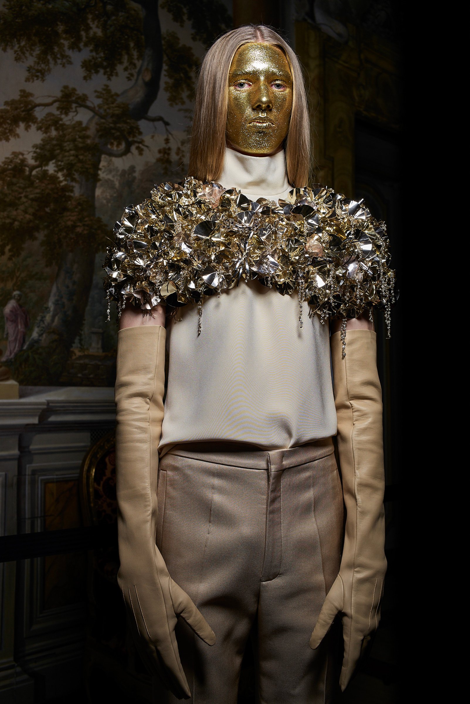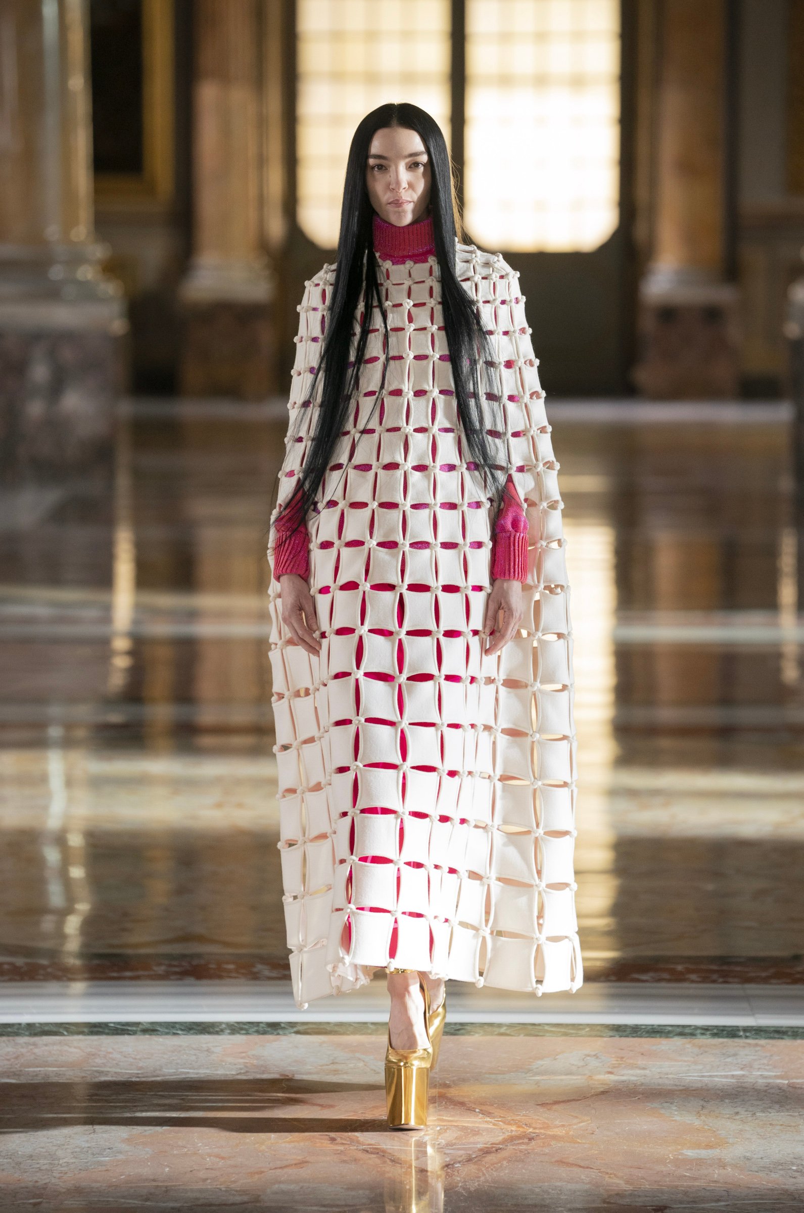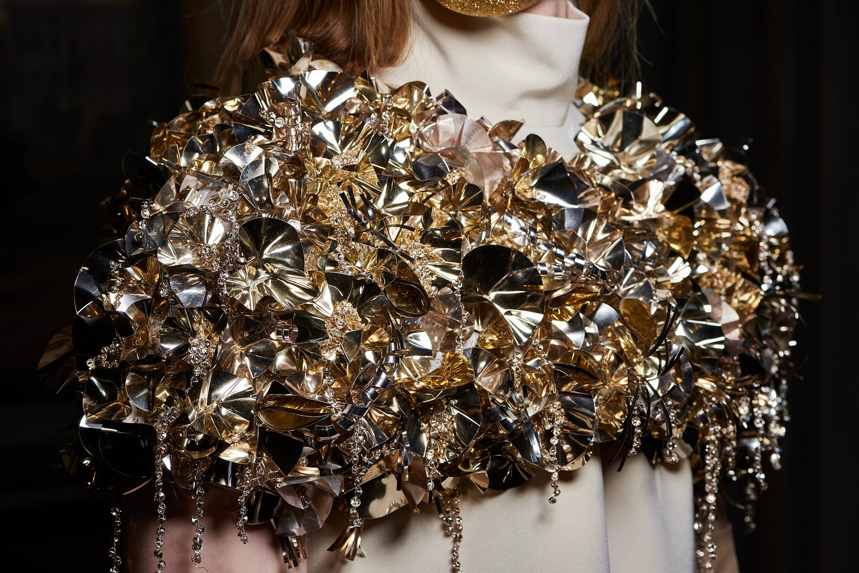 後半に登場する立体的なデコレーションは、クチュールならではの精巧な作り。フィナーレの後には白衣のクチュリエたちが全員マスク姿で登場し、「これは人間を称えるコレクションだ」というメゾンのステートメントを思い出させた。