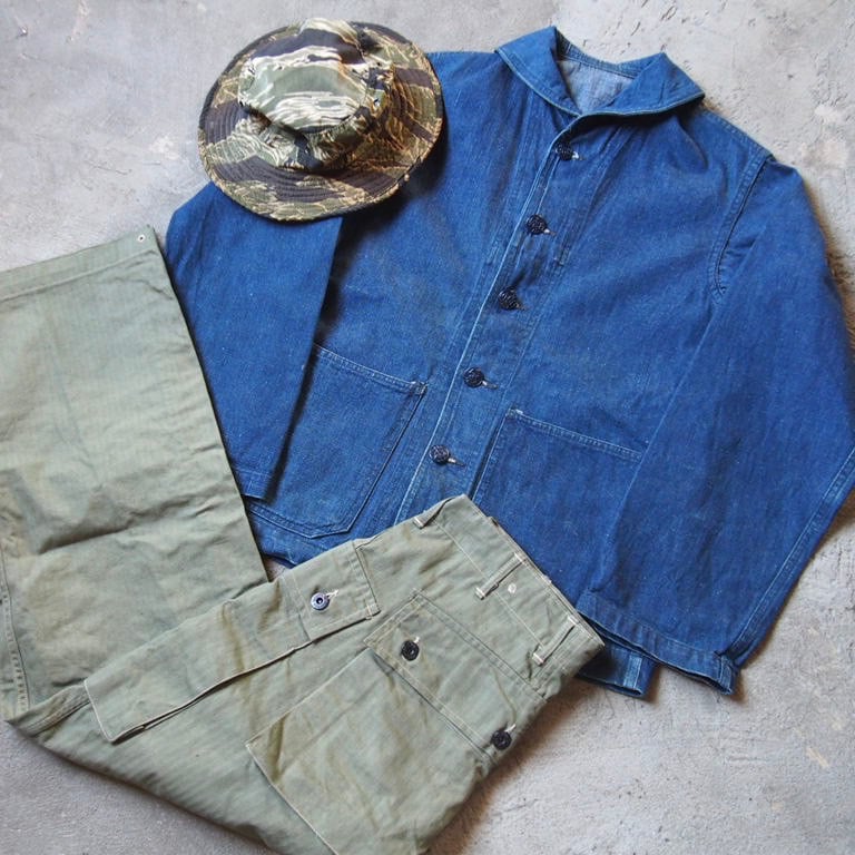 1940's U.S.NAVY Shawl collar Coverall、1940's USMC M-44 HBT Monkey Pants、VINTAGE Tiger Camo Hat
