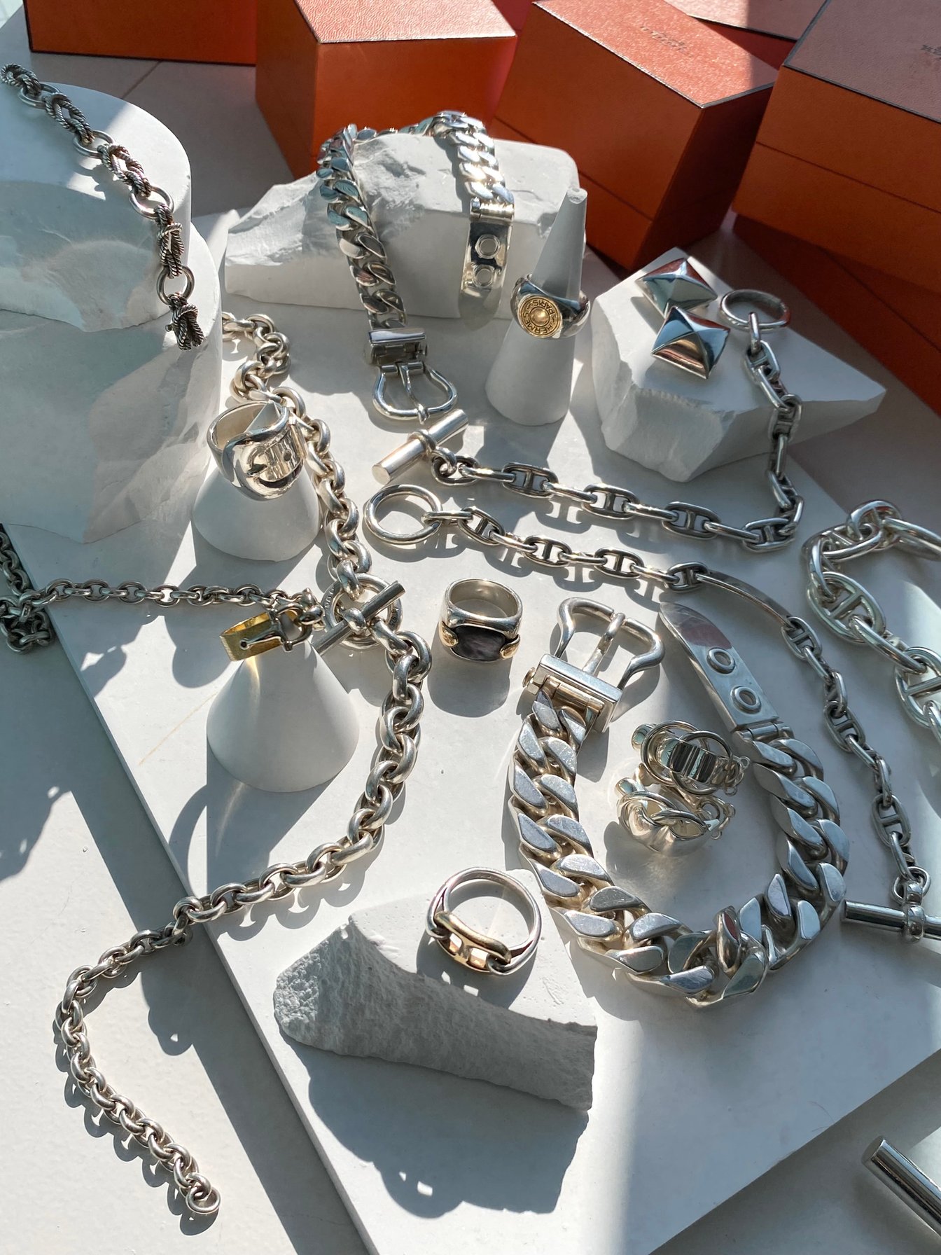 十倍直昭:近年非常に人気が高く、お探しの方も多いヴィンテージエルメスジュエリー。特にブレスレットは需要が大変高いアイテム。メンズの方はピンキーリングもおすすめです。