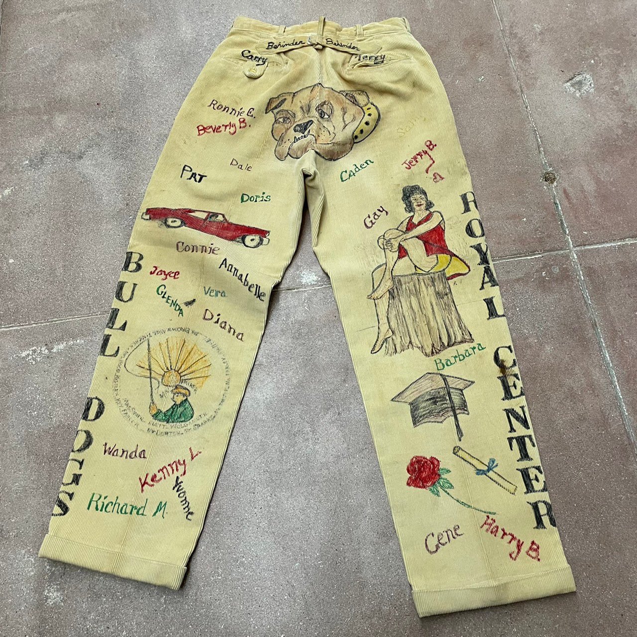 十倍直昭:メモリアルパンツはアート性が高く一点物の面白いアイテムです。年代の古い物は更に数が少なく、バックルバックが付いた物はなかなか見つける事が出来ない希少品。