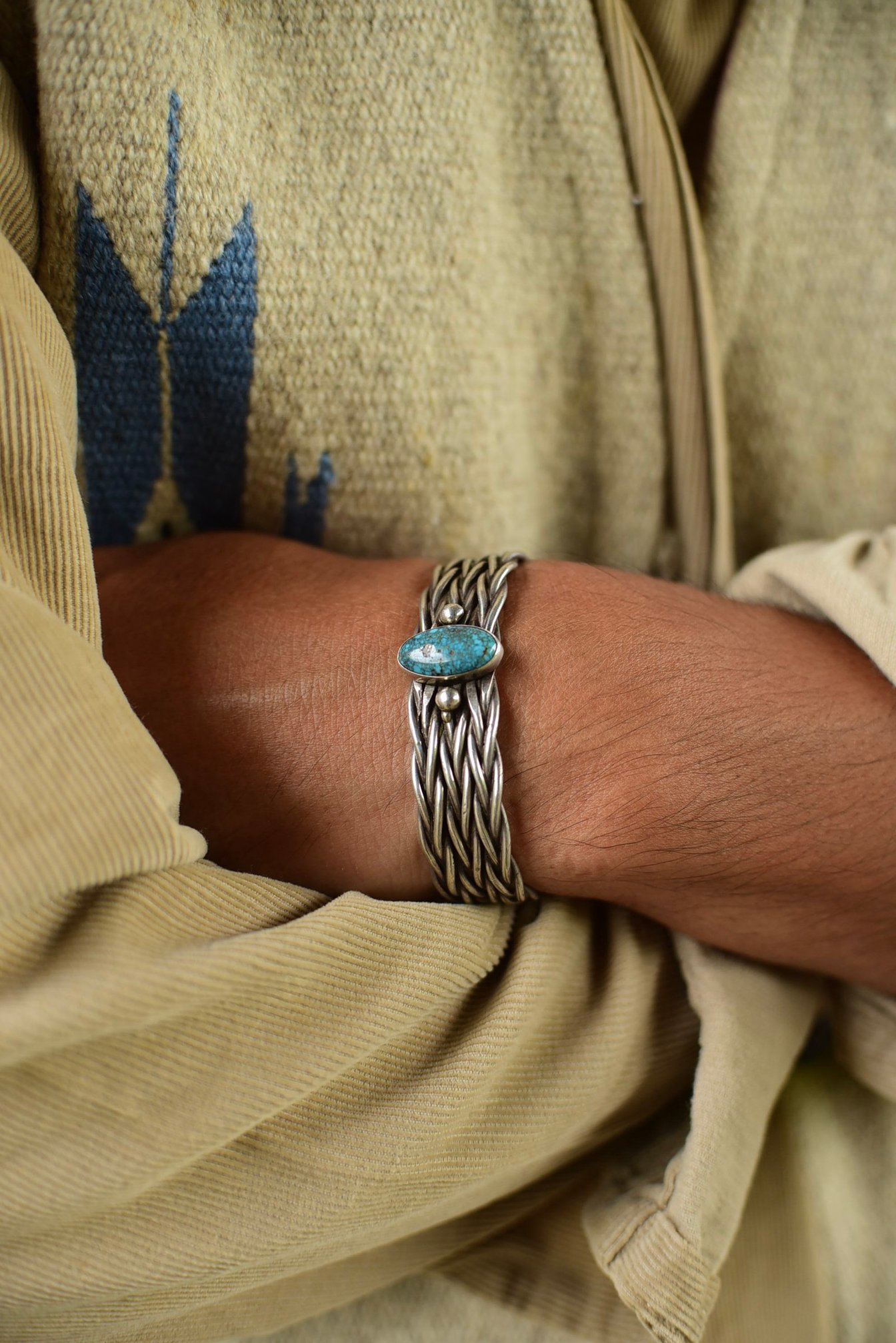 Atq Navajo Braided Wire Cuff w/High Grade Turquoise c1940~