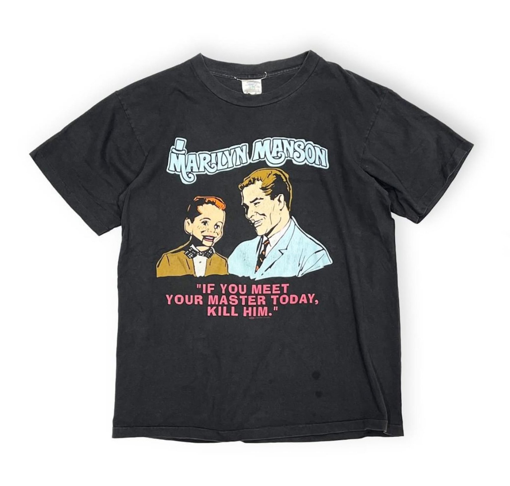 こうしたヴィンテージTシャツもまず1990年代の物を探すのがマスト。ポイントはサイズ感です。「1980年代以前のTシャツは1990年代に比べてサイズ感が小さい物が多いので、ビッグサイズのゆったりしたサイズが揃っている1990年代から2000年代初期の物は徐々に入手するのが難しくなってきています」と十倍さんが言うように大きめサイズは希少。近年のトレンドからゆったりとしたサイズ感が好まれており、ヴィンテージTシャツで一番人気のサイズはXLとのこと。また1990年代は世界的にヒットしたバンドやラッパーが多く、映画もカルチャー色が濃い作品が豊富でデザイン性が高いことも人気を後押ししています。