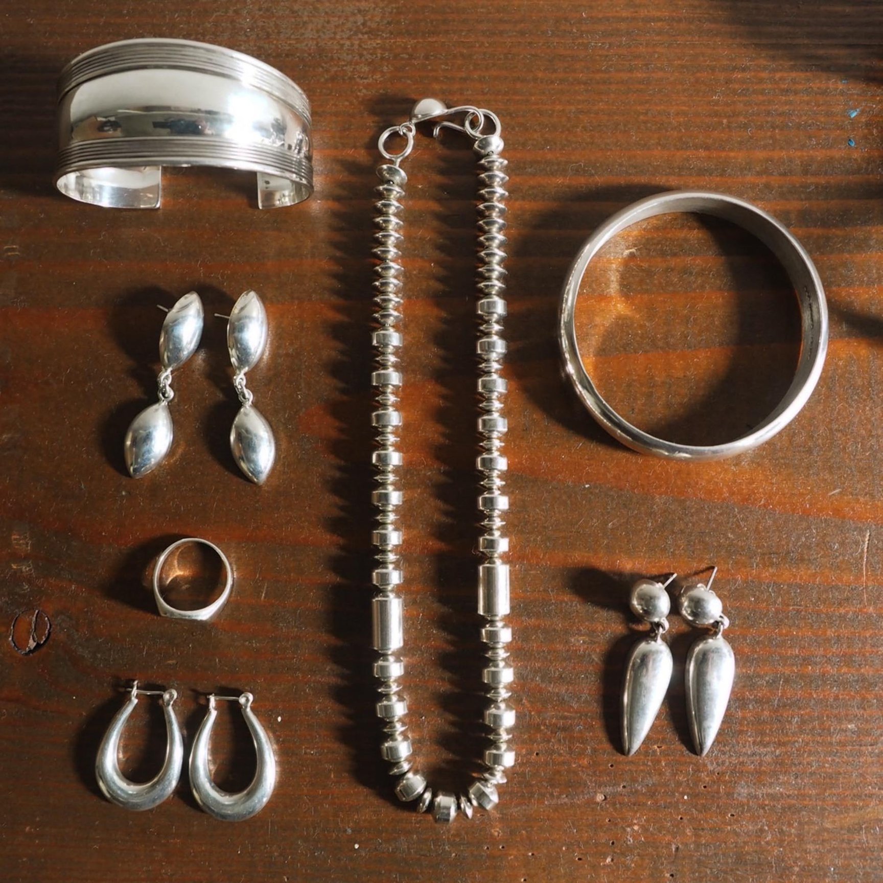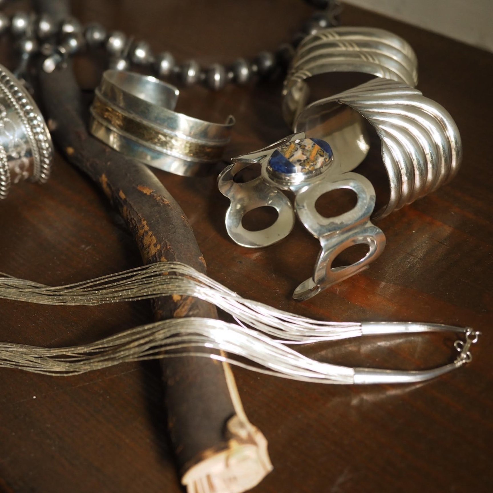 メキシカンジュエリーとは、銀の産地で通称“銀の町”とも呼ばれているメキシコのタスコを中心に作られているジュエリーの一種。無骨な雰囲気を持ちながら、銀細工の職人による斬新で優れたデザイン性が特徴です。十倍さんは人気の理由について「『エルメス(HERMÈS)』『ティファニー(Tiffany & Co.)』といったデザイナーズジュエリーなどが人気となり、入手が困難な物も増えてきたことで、新たにメキシカンジュエリーに目が向けられています」と解説。歴史は古く、1940年代頃から製造されていたと言われていますが、今特に注目したいのは1990年前後のメキシカンジュエリー。年代が古いものは高価で手が出しにくいことが多いため、比較的に価格が抑えめで、時代背景から大ぶりなデザインのものが多く作られていた1990年前後のメキシカンジュエリーが注目です。
