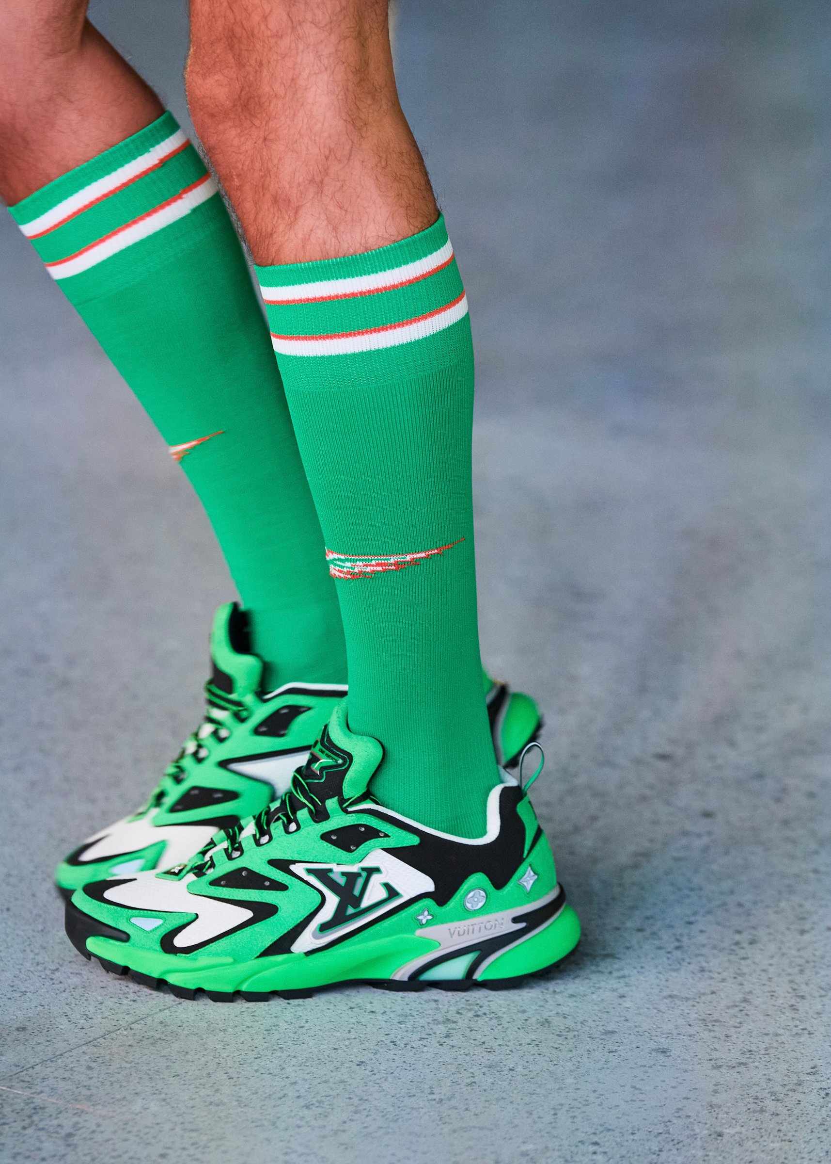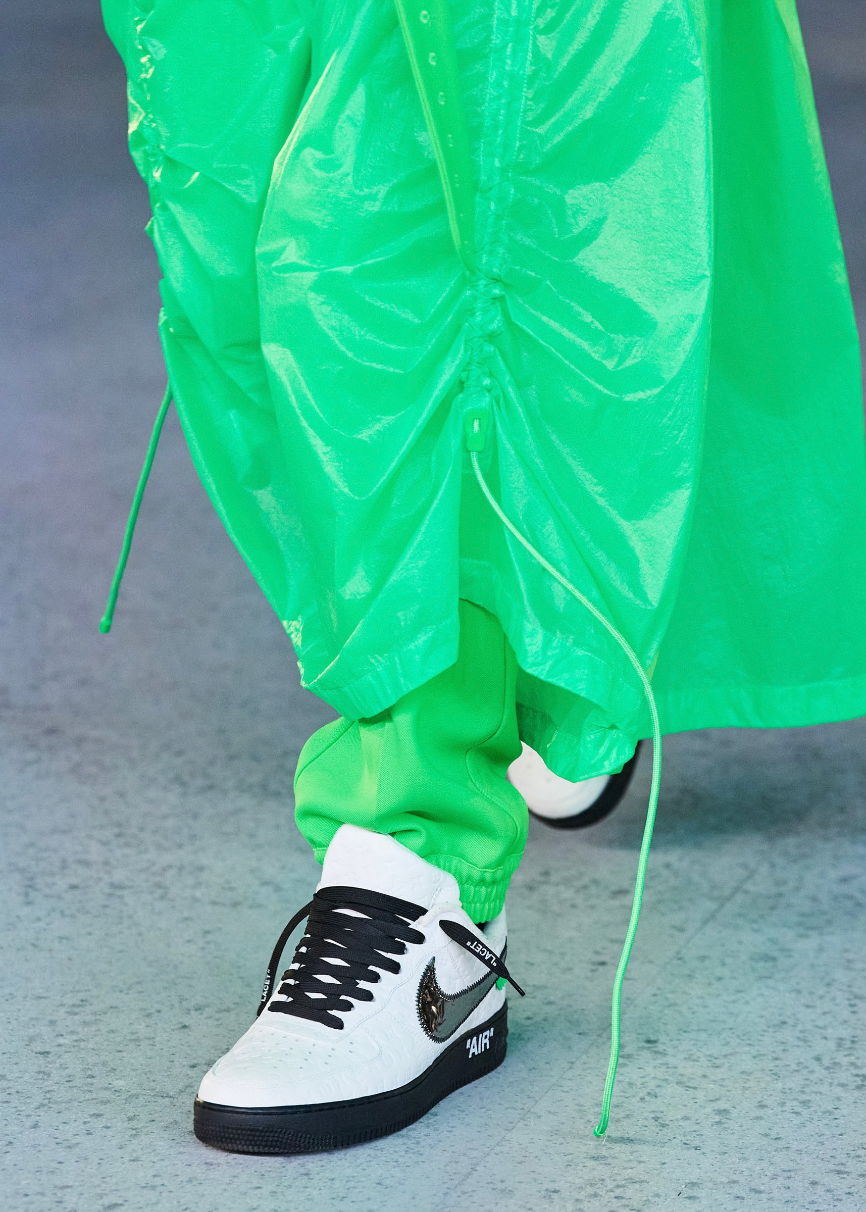 また、6月の発表時に話題となった鯉のぼりを模したデザインのバッグなど、豊富なバリエーションのアクセサリー、そしてファンが熱い視線を注ぐ「ナイキ(NIKE)」とのコラボレーションによる「Air Force 1」も登場。ナイキとはこれまで長く協業してきたヴァージルだが、今回のコラボは一際注目を集めている。