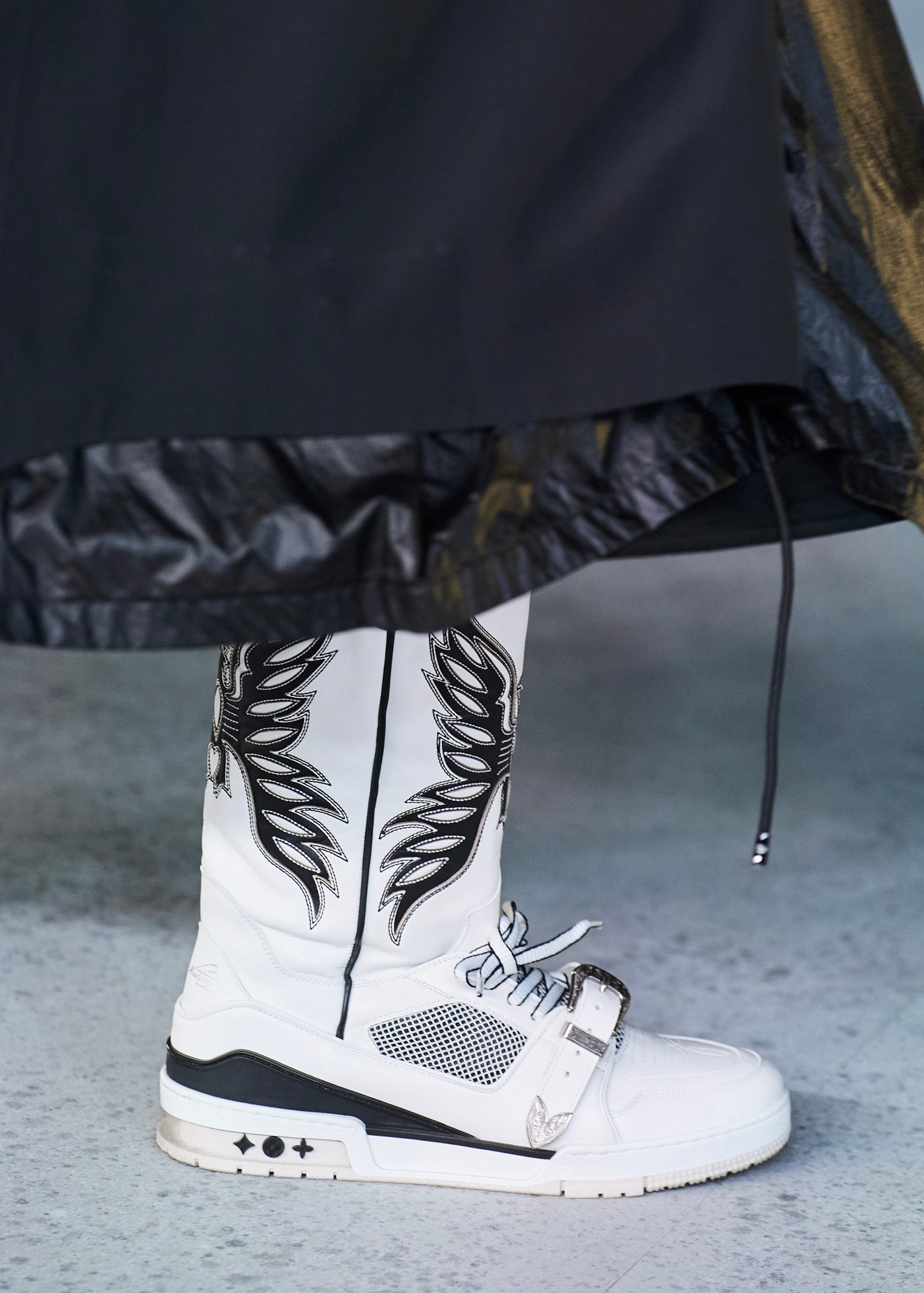 今回のショーは、6月に映像で発表した2022年春夏コレクションに新たなルックを加えたスピンオフショーとして、アートバーゼルの時期に合わせてマイアミで開催するよう準備が進められてきた。アーティスティック・ディレクターのヴァージルが急逝したのは現地時間で11月28日だったが、イギリスのメディアBOFによるとヴァージルの遺志と妻シャノンの望みを受け、ショーをキャンセルすることなく予定通りの実施に至ったという。現地にはカニエ・ウェスト(Kanye West)やファレル・ウィリアムス(Pharrell Williams)など親交の深かった友人らも駆けつけ、ヴァージルによるクリエイションを見届けた。