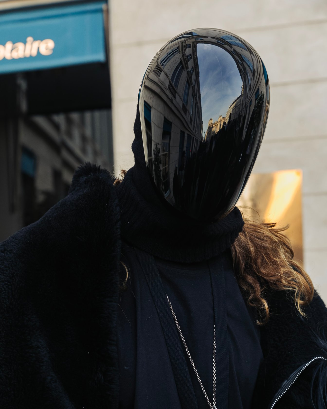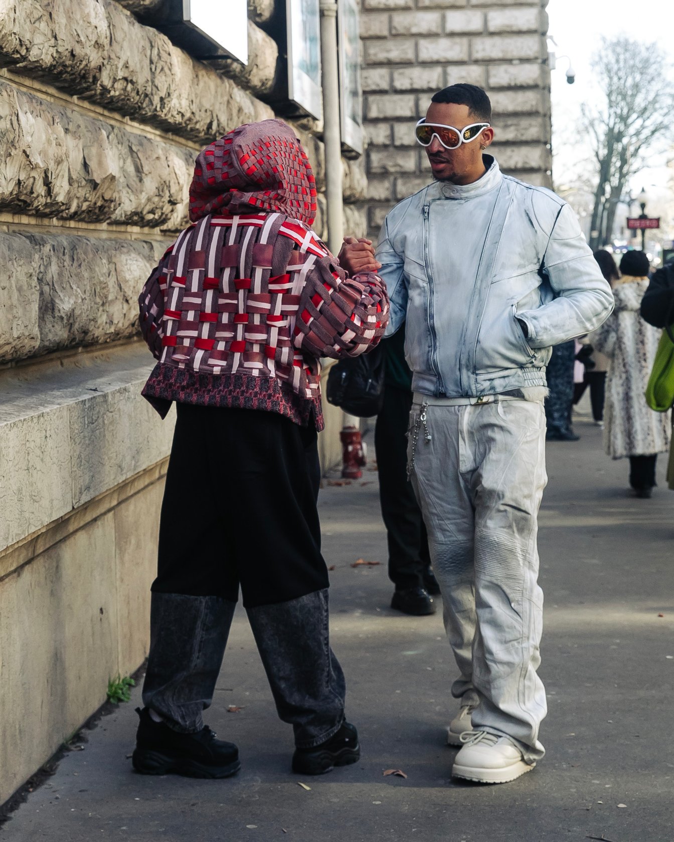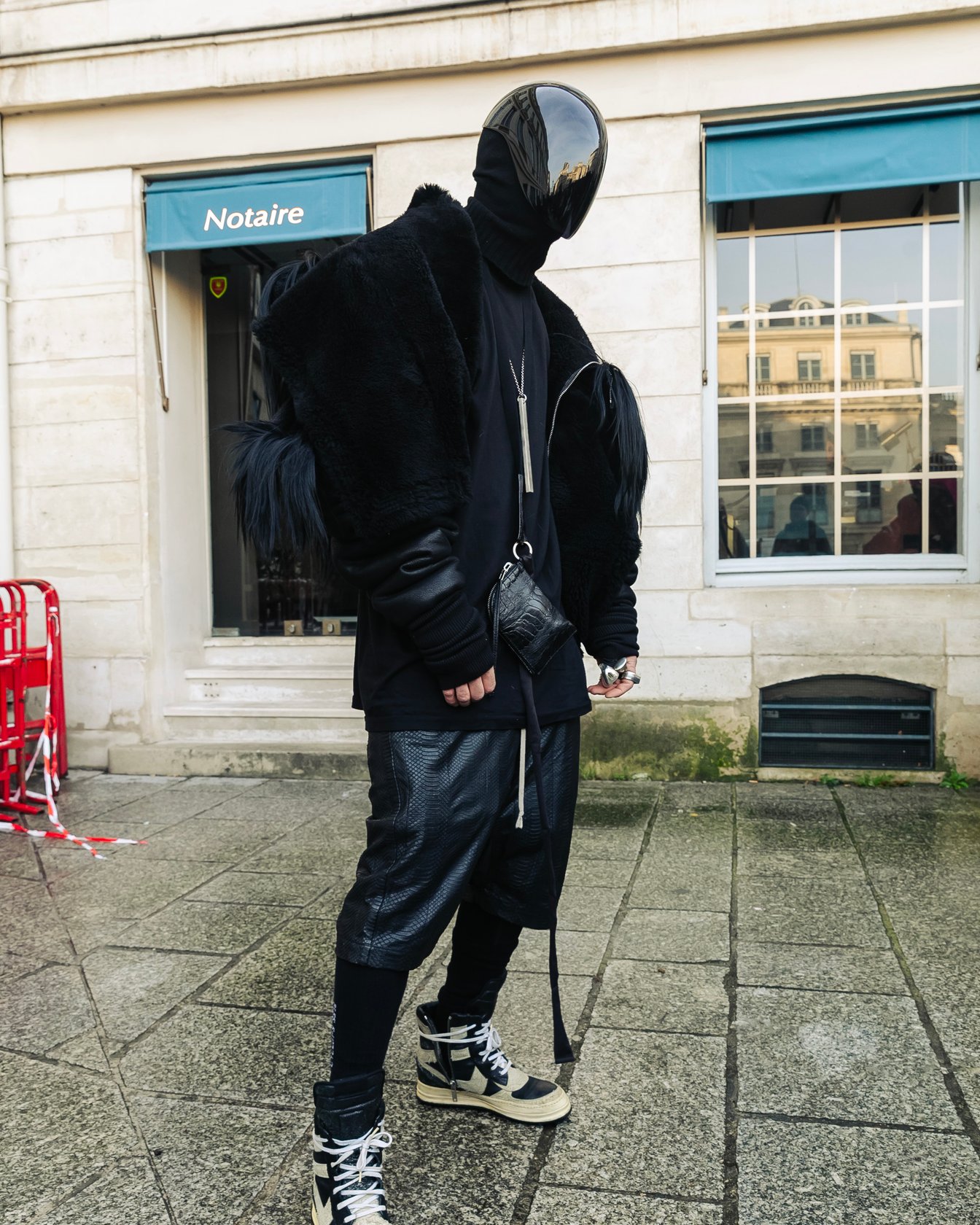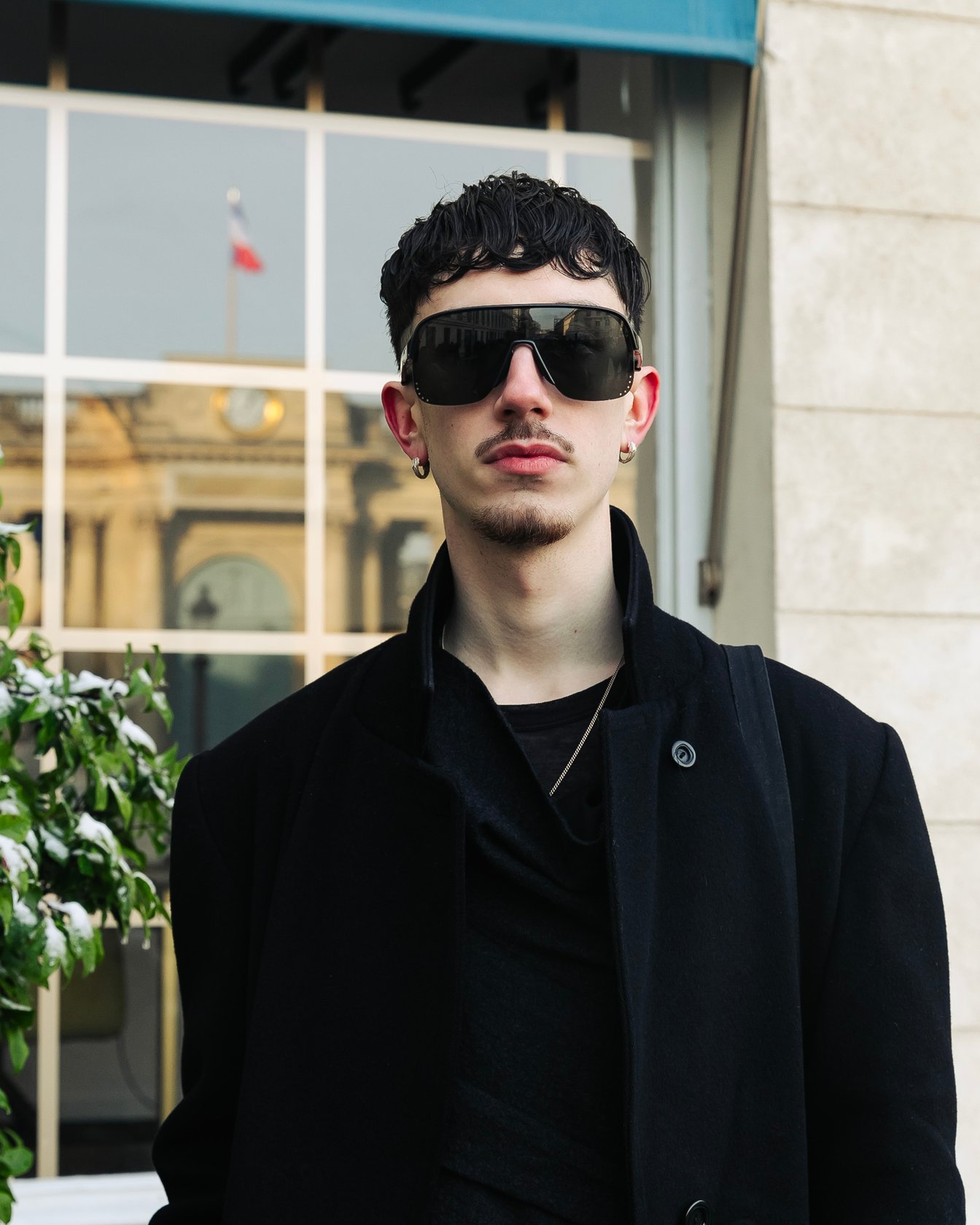 2024年秋冬コレクション期間にパリで撮影されたストリートスナップから、ファッショニスタたちの着こなしをチェック。今回のテーマは「VRゴーグルを思わせる、近未来のサングラス」。