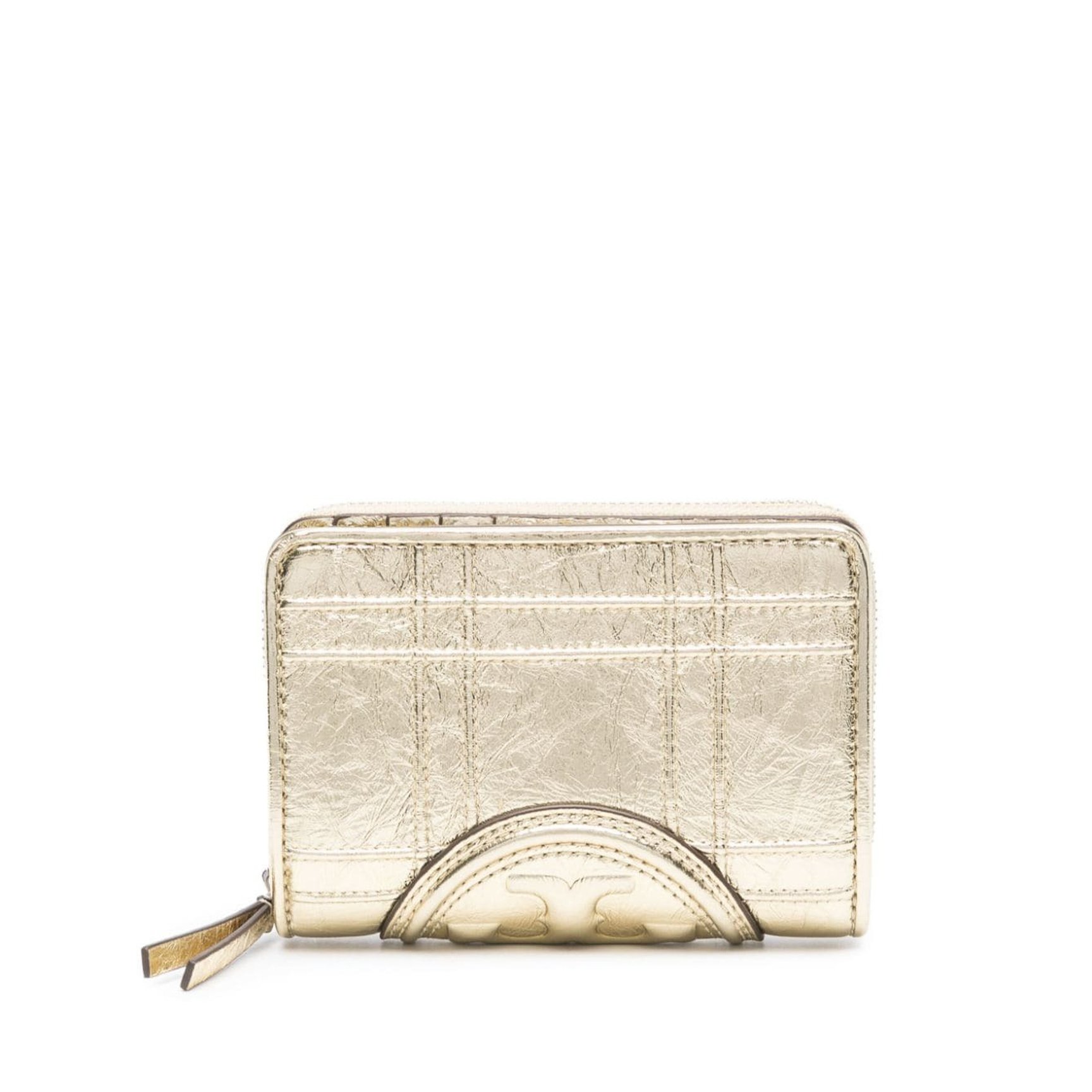 手に取る度にテンションが上がるカラーウォレットは、金運がアップしそうな「トリー バーチ(TORY BURCH)」からチェック。ロゴモチーフが指の隙間から覗く華美なお財布は、コインポケットがジップ式、カード&札入れ部分がスナップボタン式と、機能性も抜群です。