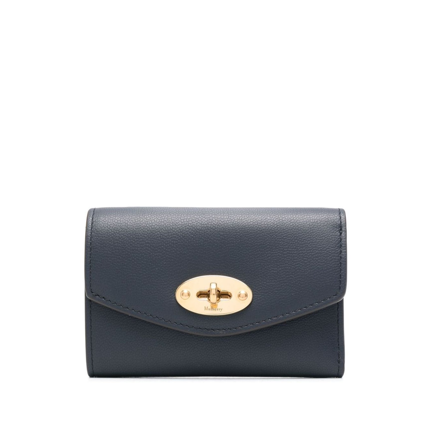 マチュアなネイビーに上品なゴールドが浮かぶ「マルベリー(Mulberry)」。美しい所作を叶えるアイコニックな留め具、「ポストマンズロック」をフロントにあしらっています。オープンポケットがふたつと札入れ、カードスロットは6つ装備。同色の長財布タイプもお見逃しなく。