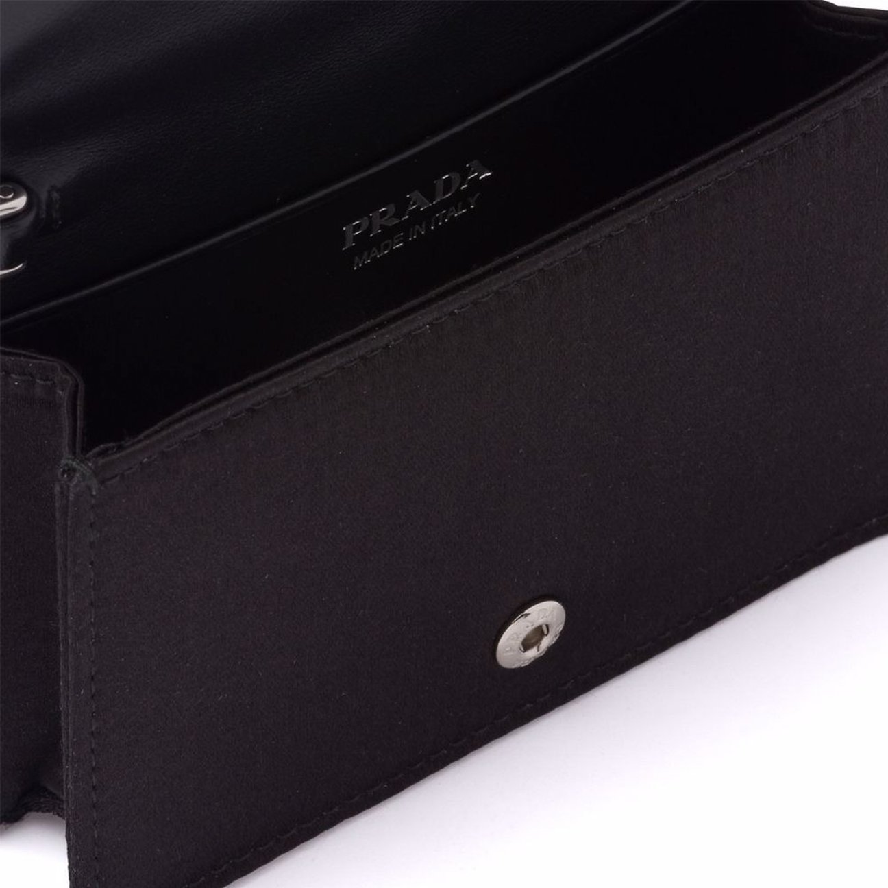 コーディネートの主役として身に着けたい、「プラダ(PRADA)」のチェーンカードケース。エナメルメタルのトライアングルロゴと、敷き詰められたクリスタルの装飾が輝きます。エッジの効いたネックレスとしても、究極のミニバッグとしても活躍しそうな予感。