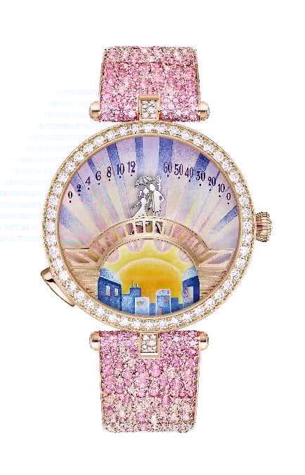 ヴァン クリーフ&アーペル「レディ アーペル ポン デ ザムルー オーブ ウォッチ」 自動巻き(Valfleurier Q020)、パワーリザーブ約36時間、ケース径38ミリ、18Kローズゴールド、ダイヤモンド、ピンクサファイア。6666万円