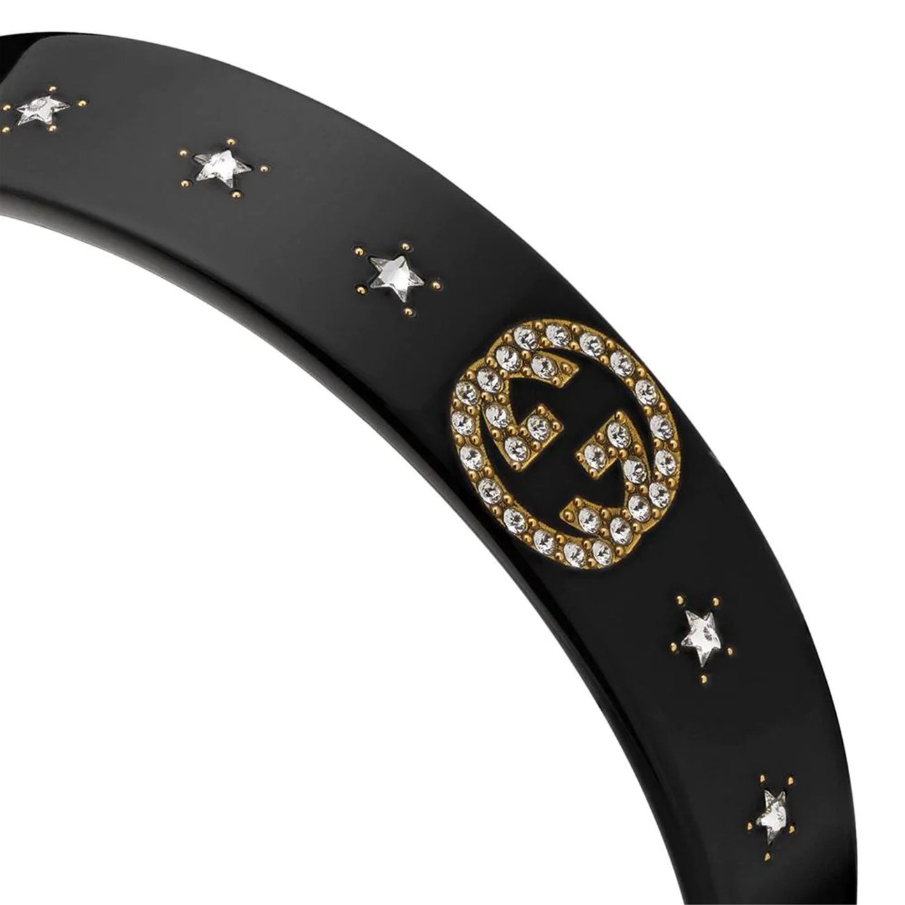 最後にご紹介するのは、「グッチ(GUCCI)」のインターロッキングGヘアバンド。クラシックなムードの中にパンクなスピリットを感じる一本は、甘いカチューシャのイメージを払拭するアイテムです。均等に並ぶ小さな星のクリスタルがチャームポイント。