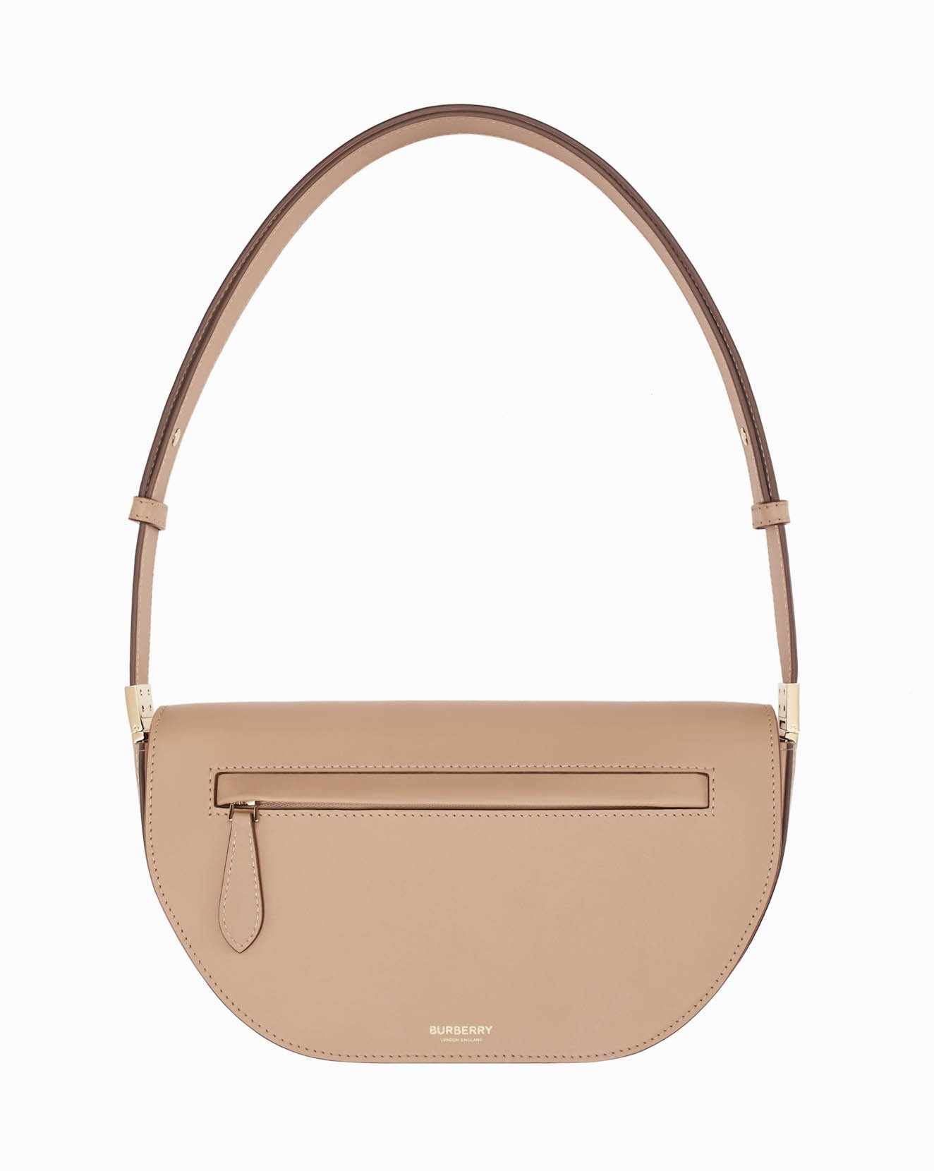 オリンピアバッグを語る上で欠かせないのが、ハンドルからボディへと流れるような美しい曲線フォルム。これはチーフクリエイティブオフィサーのリカルド・ティッシ(Riccardo Tisci)が思い描く「完璧なシルエットのハンドバッグ」を具現化したものだそう。バッグは初披露となった2020年秋冬コレクションのショー会場であるロンドン・オリンピア展示場の屋根の形からインスパイアされ、クレッセント(三日月)の曲線を取り入れたミニマルでかっちりとしたシルエットは、身につけると身体にぴったりとフィットして唯一無二の存在感を放ちます。