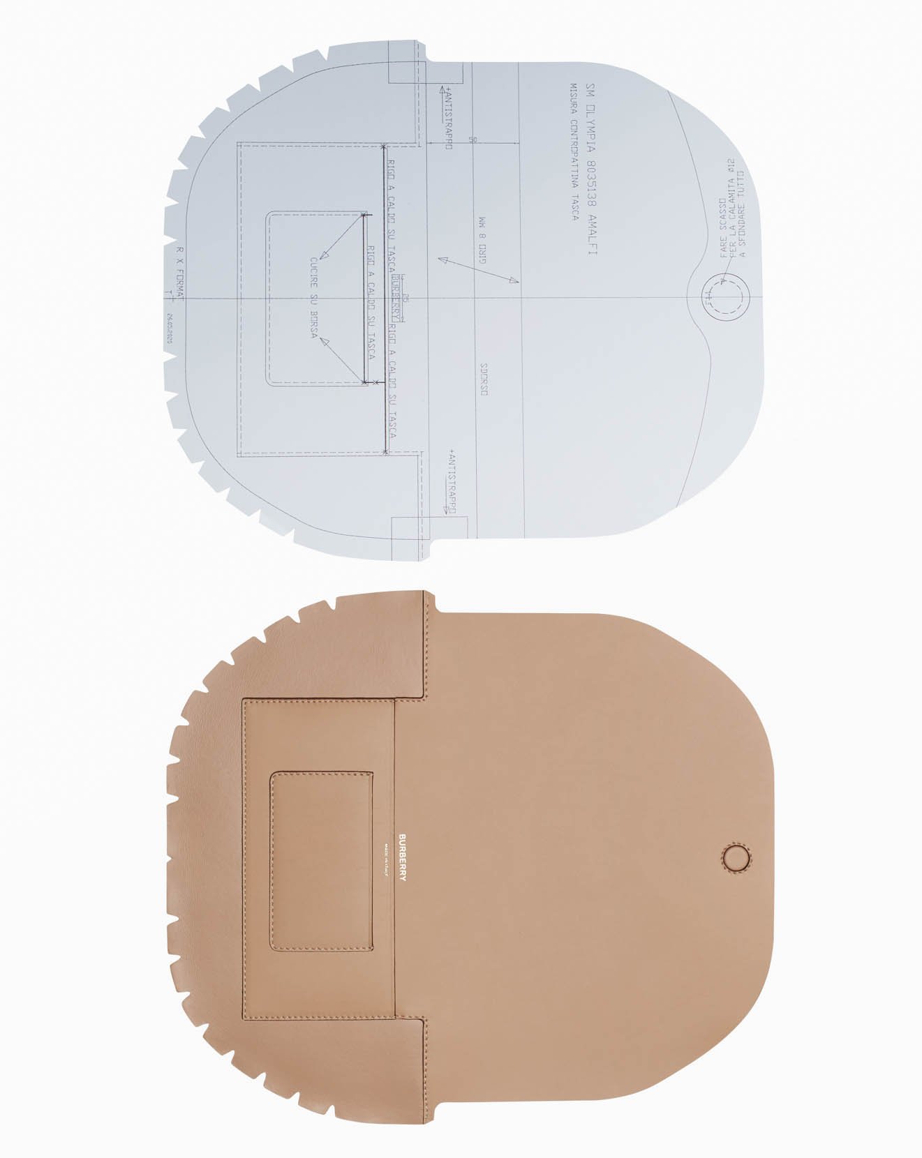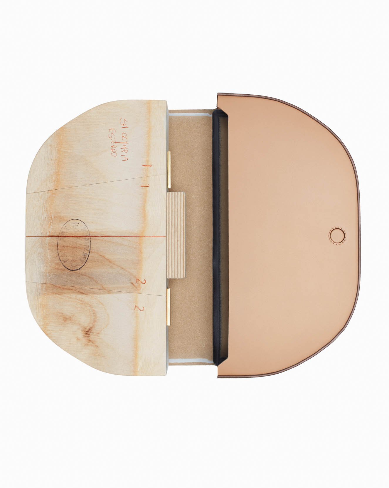 ティッシの理想のバッグは、高品質な素材とブランドの高いクラフトマンシップがあってこそ完成したもの。バッグの製作プロセスは、熟練した職人がレザーを20ほどのパーツにカットするところから始まります。カーブしたシルエットは特殊な木製ブロックを使い、職人の手作業で成形されており、ミディアムとスモールサイズではボディのフロントフラップに1枚皮のレザーを使用することで、つなぎ目のない美しい形状に。また、コバには塗料を3回コーティングすることで耐久性と見た目の美しさを高めています。伊勢丹新宿店のザ・ステージでは、型紙や裁断されたレザーパーツ、工具や木型などがディスプレイされており、職人の息吹を感じることができます。