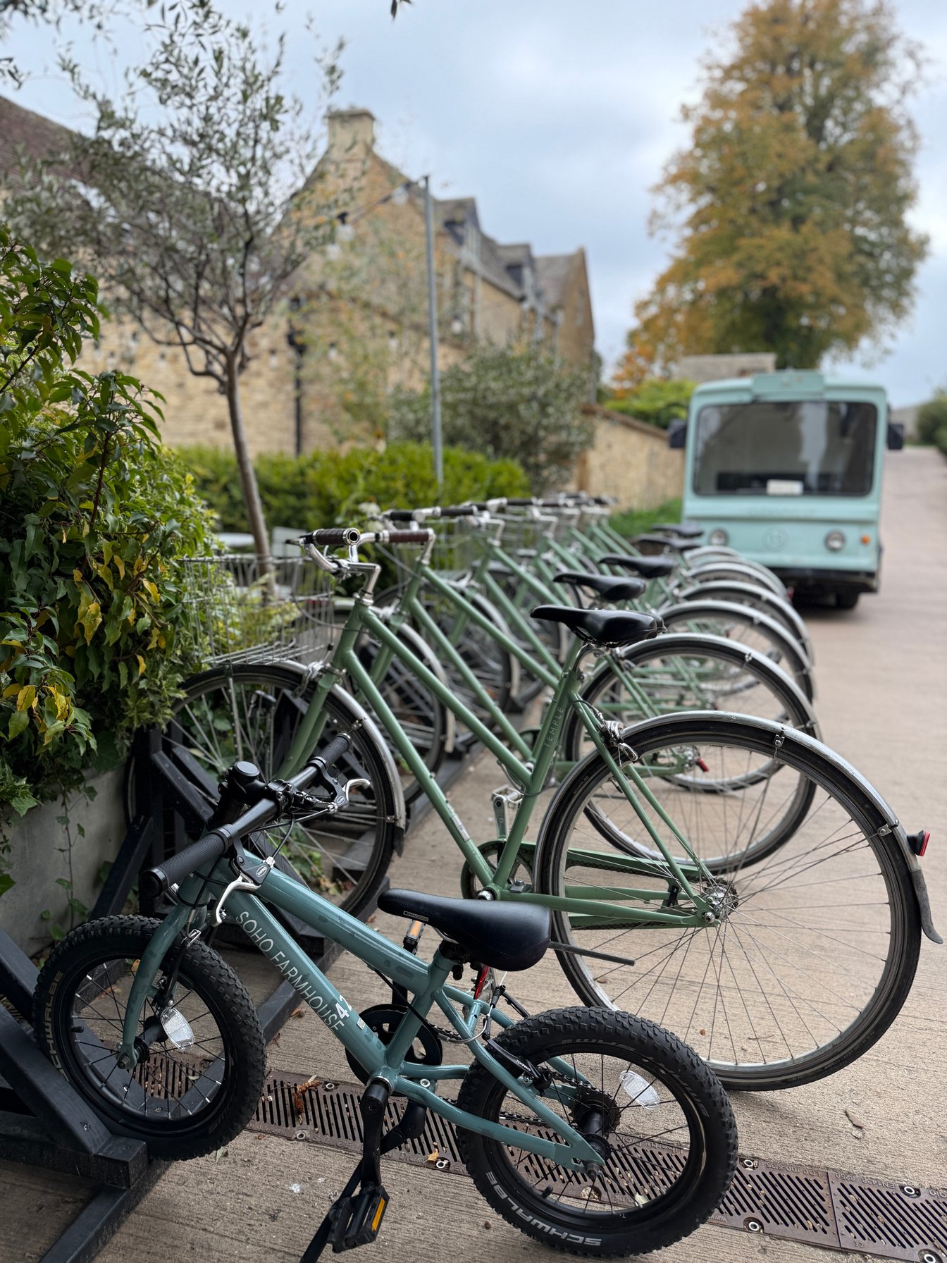 狭い石造りの凸凹道を越えて、ようやく旅の目的地「ソーホーファームハウス」に到着。ハウス内は言ってみれば一つのビレッジ。レストランやスパ、ジム、カフェ、プールといった共有施設を囲むように「キャビン」「ハット」「ピグレット」と呼ばれるタイプ別の宿泊棟が点在しています。共有施設と宿泊棟が離れているので、移動は自転車が便利。施設内の至る所に自転車が配置されており、自由に移動することができます。